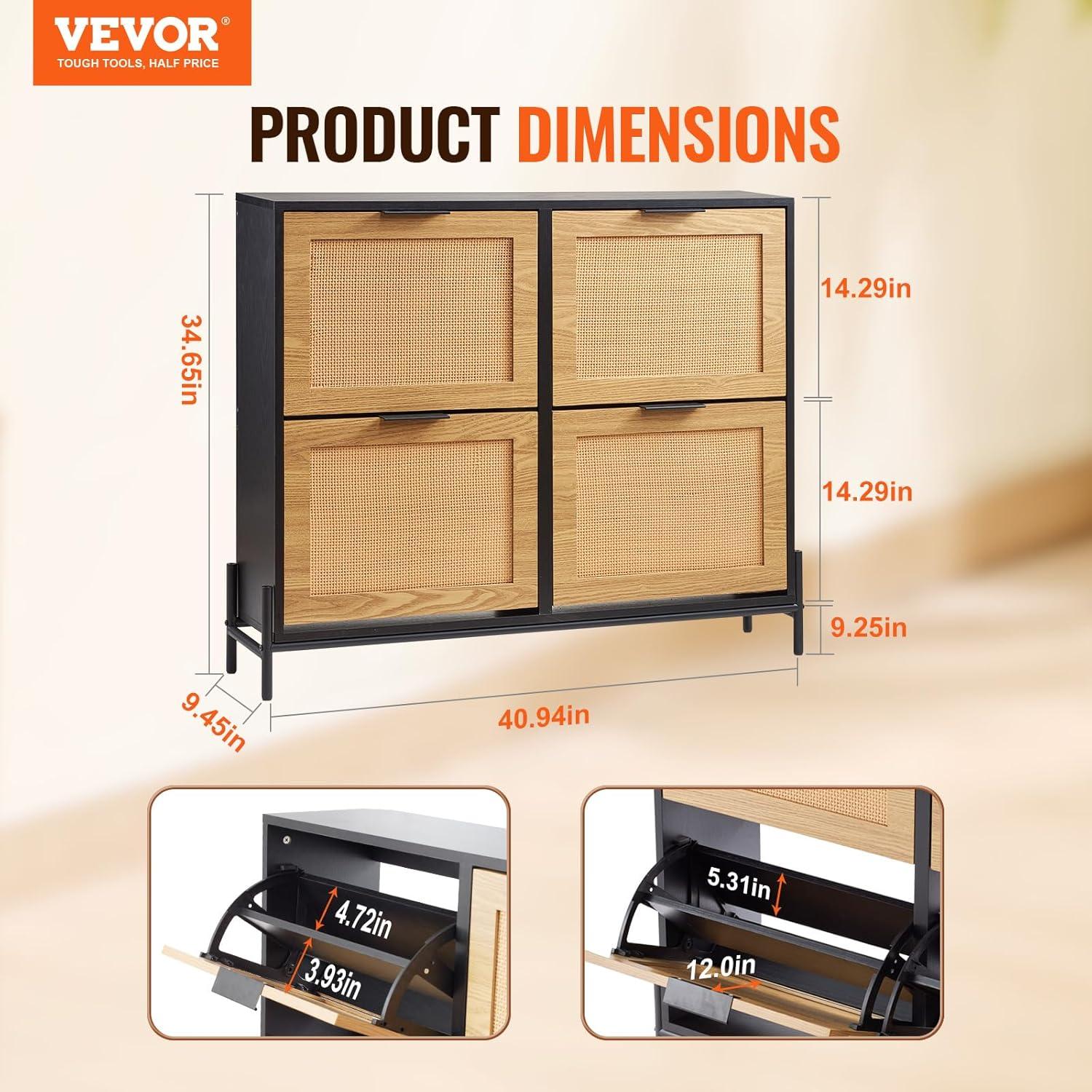 imageVEVOR Rattan Shoe Cabinet Narrow Shoe Storage Organizer with 2 Flip Rattan Drawers ampamp 1 Slide Drawer Metal Legs Slim Shoe Entryway Cabinet Ideal for Entryway Closet Hallway BlackLight Wood Color