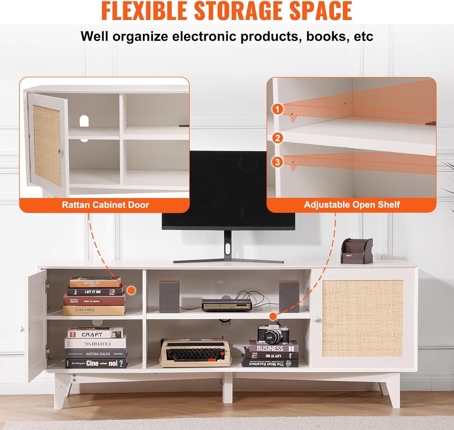 Be the first to review “VEVOR Rattan TV Stand, Boho TV Cabinet for 55 inch TV, Mid Century Modern TV Stand, Rattan TV Console with Adjustable Shelfs for Living Room, Media Room, Black(White)”