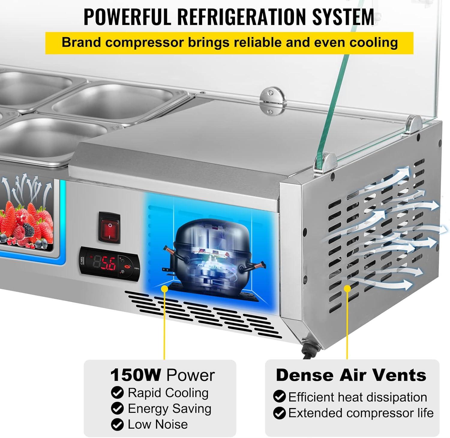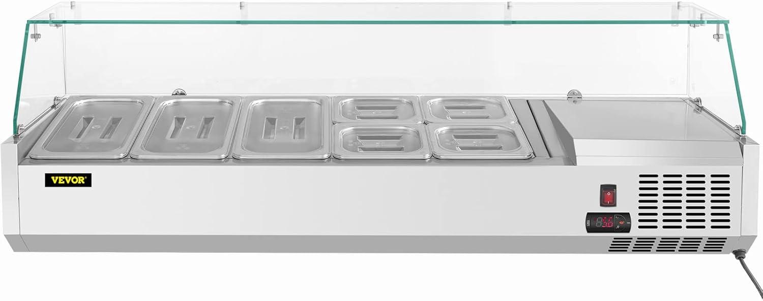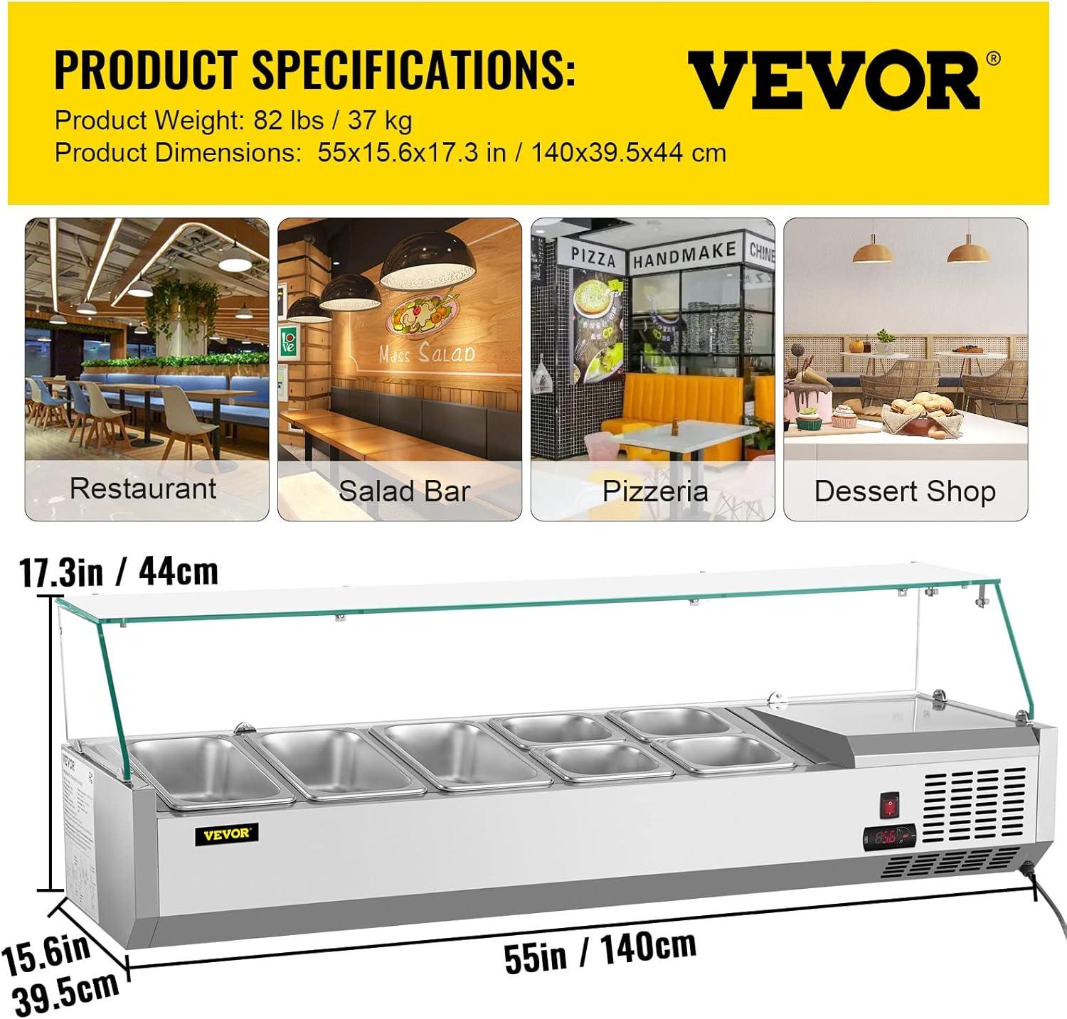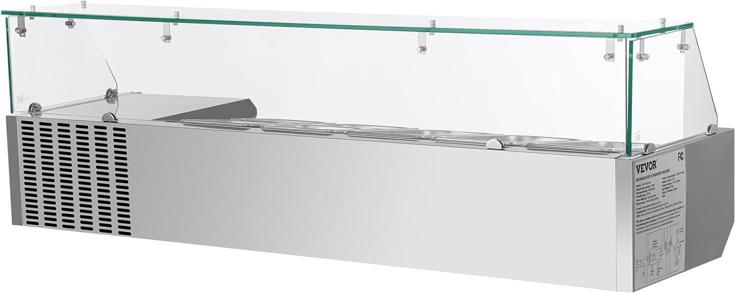 VEVOR Refrigerated Condiment Prep Station, 135 W Countertop Refrigerated Condiment Station, with 2 1/3 Pans & 4 1/6 Pans, 304 Stainless Body and PC Lid, Sandwich Prep Table with Stainless Guard, ETL(1 Count (Pack of 1))
