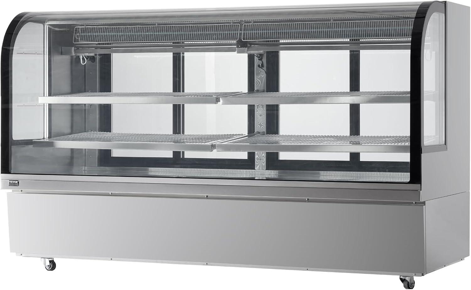 Quick Cooling: The refrigerated display case features a Turbo fan cooling system, capable of rapidly cooling down to the set temperature (temperature range: 35.6-42.8°F / 2-6°C) and maintaining the internal temperature within the designated range. It is energy-efficient, consuming as low as 3.78 kW.h/24h, ensuring your food stays in optimal condition.