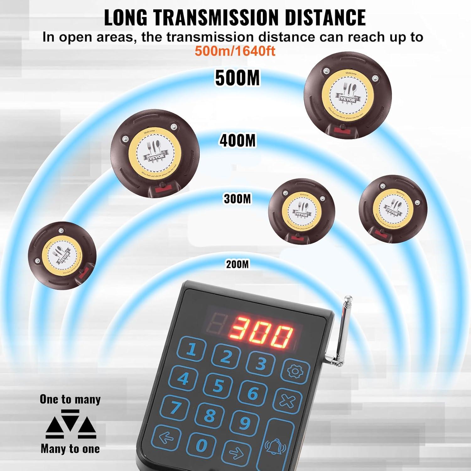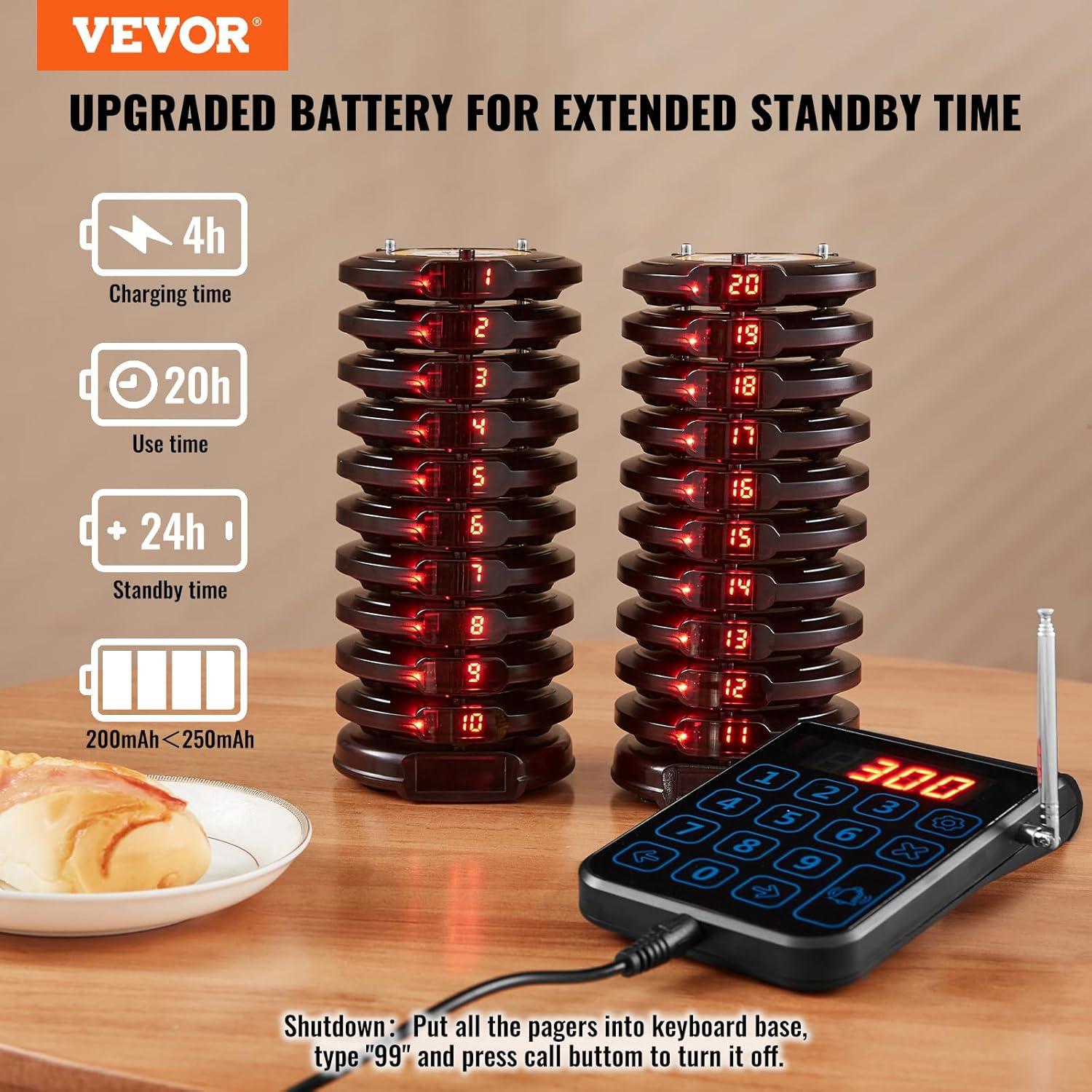 VEVOR Restaurant Pager System, Wireless 500m Long Range Lineup Waiting Queue Signal, Guest Customer Calling Beepers with Vibration & Flashing, 20 Buzzers for Food Truck, Church, Nursery, Hospital