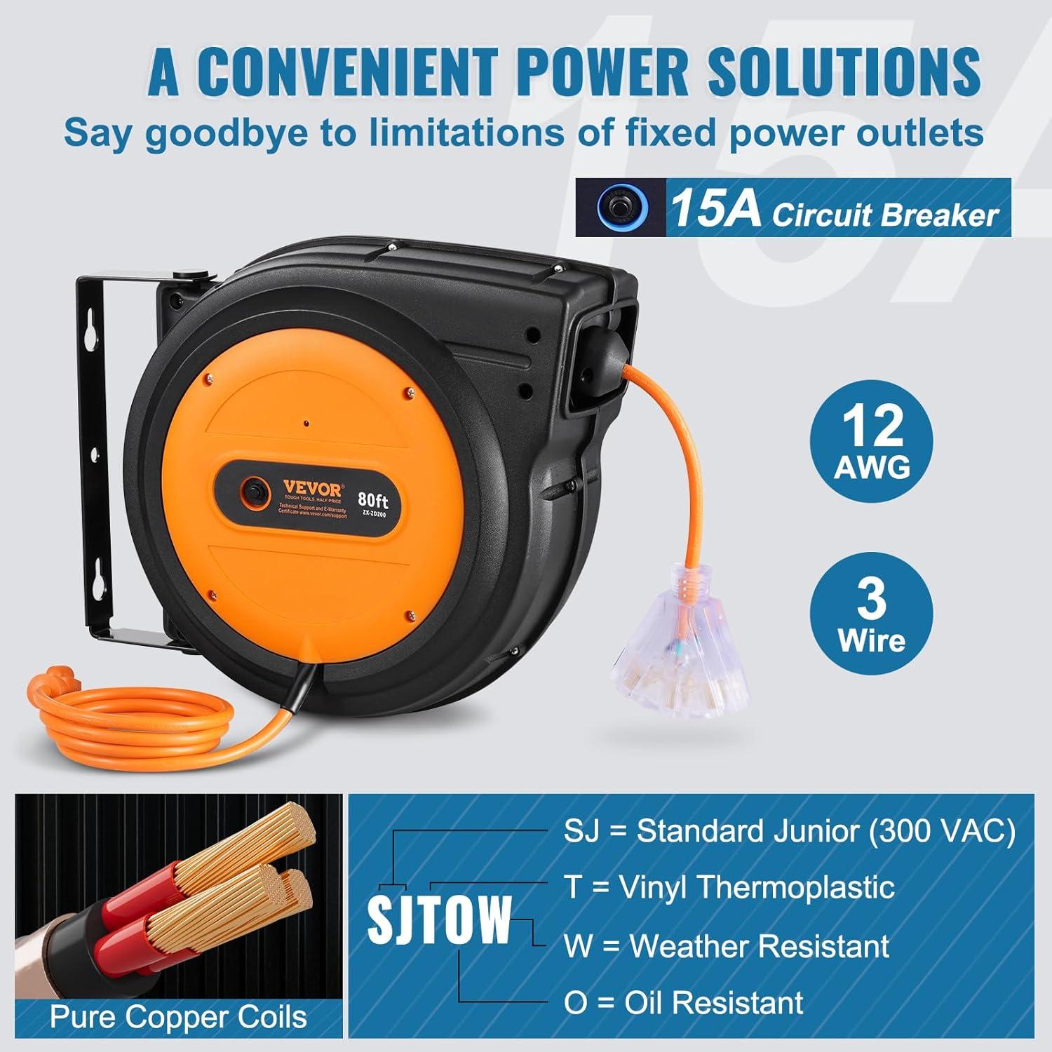 Heavy Duty 50FT Cord Reel: Ready for any challenge, our 14AWG/3C SJTOW cables are built to resist water, oil, acid, alkali, and ozone. Our retractable extension cord reel features a high-quality PP case, 50 ft extension cord, and 4.5 ft lead-in cord, rated for 13A / 125V / 1625W. Power up and reach further than ever! Choose from 4 vibrant colors to match your style!