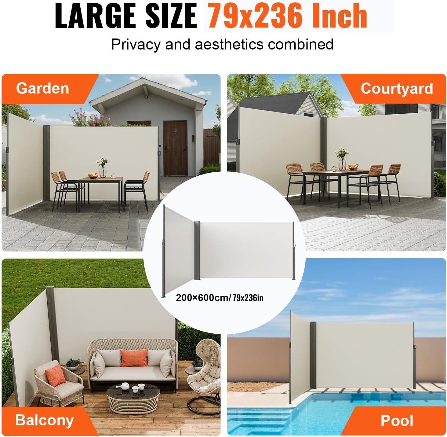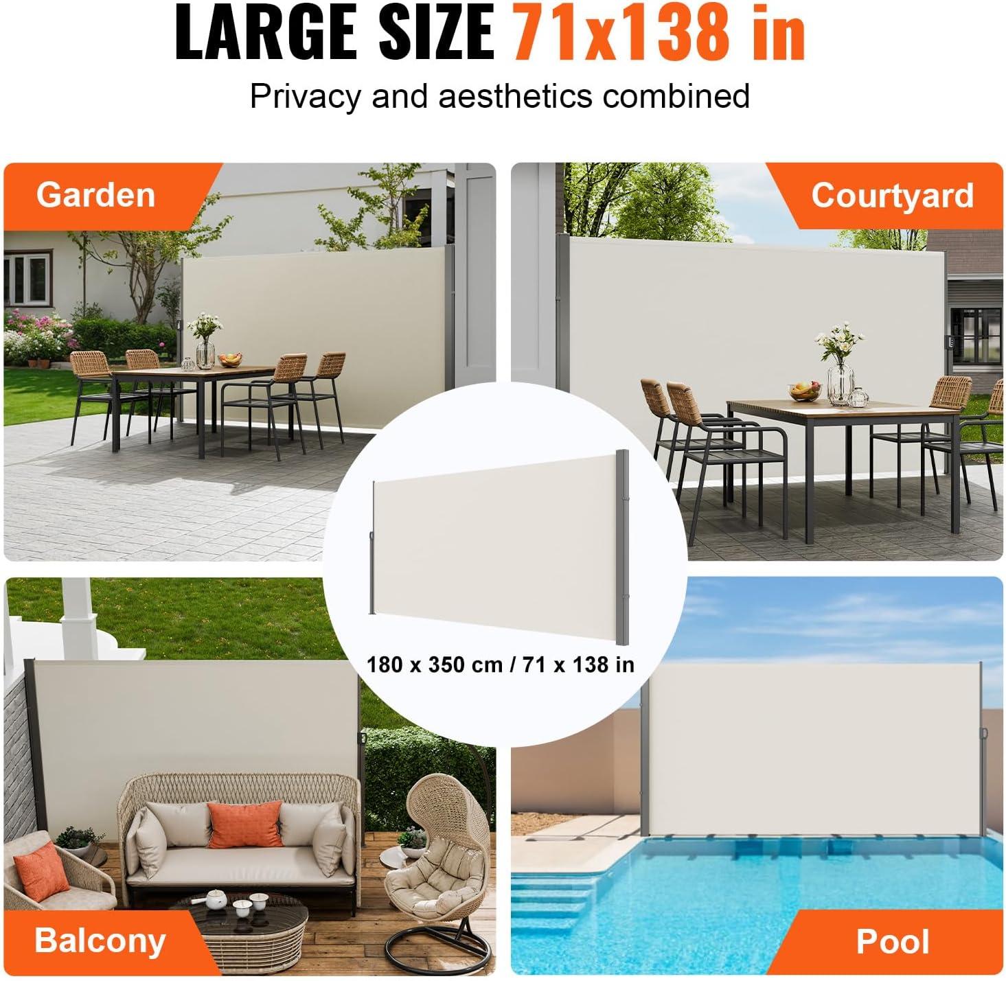 Practical Design: The 71 x 138 in/180x350cm outdoor privacy screen provides ample shading area, making it perfect for outdoor balconies, courtyards, or commercial spaces. It offers privacy and protection from wind and low-angle sunlight. Its modern minimalist design matches various outdoor environments and decor styles.