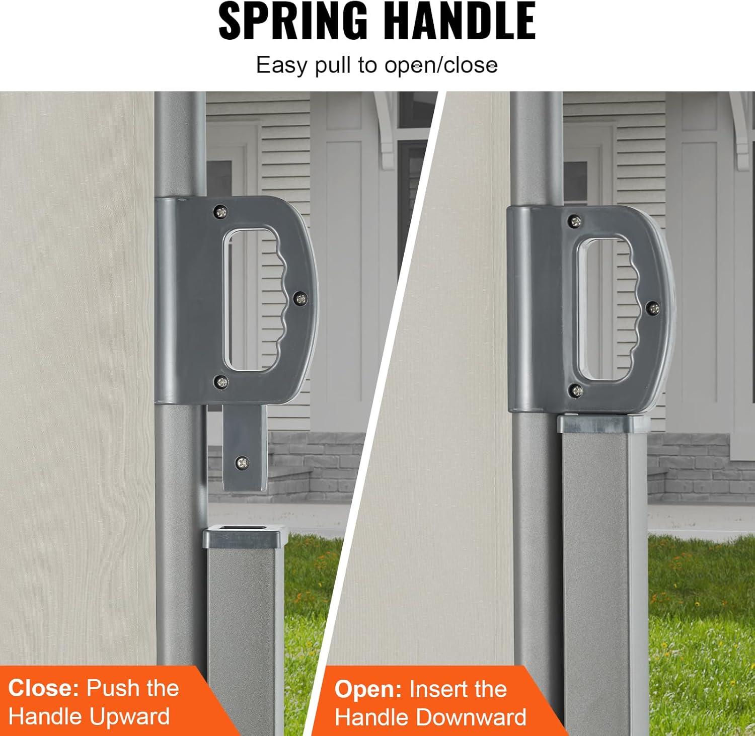 Effortless Operation: The retractable handle features a spring for smooth operation. Simply pull or push to adjust the side awning's extension and retraction. The upgraded spring handle is designed to prevent pinching, ensuring a better user experience.