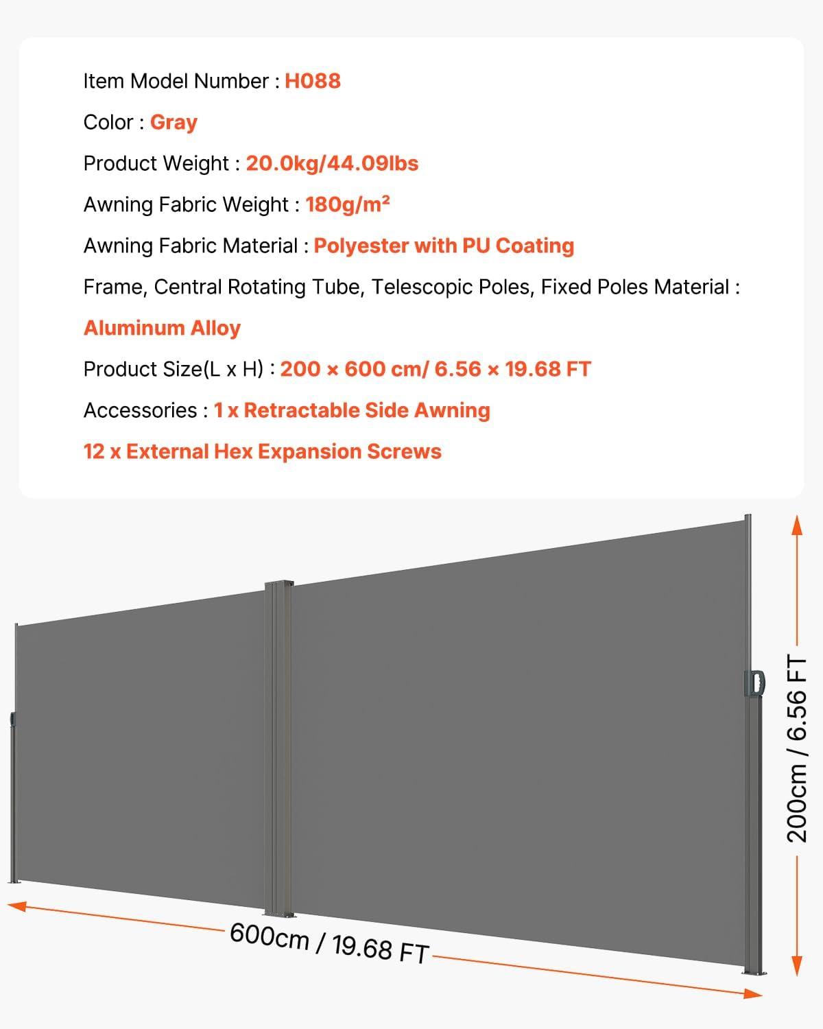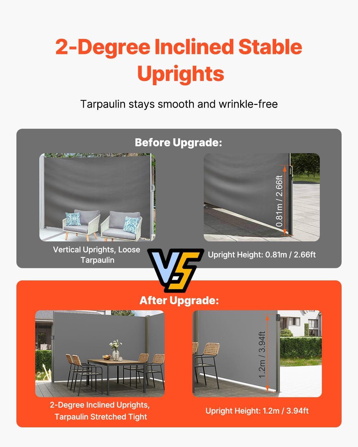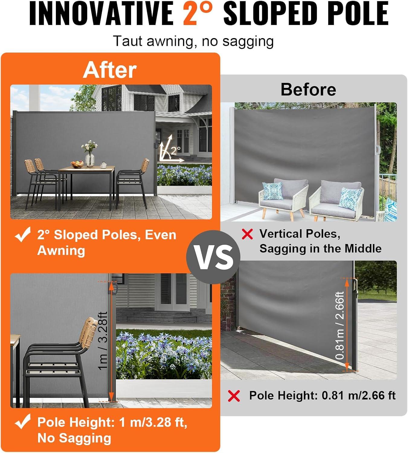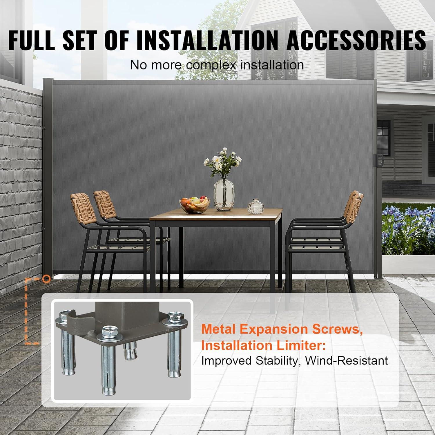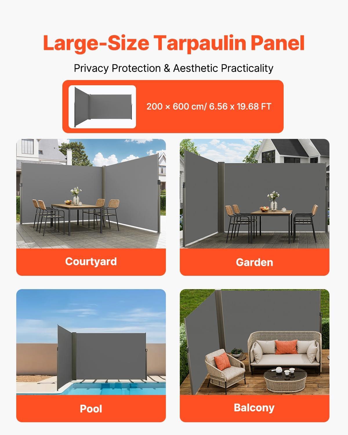 VEVOR Retractable Side Awning, 71''x 138'' Outdoor Privacy Screen, 180g Polyester Water-Proof Retractable Patio Screen, UV 30+ Room Divider Wind Screen for Patio, Backyard, Balcony, Gray(Gray)