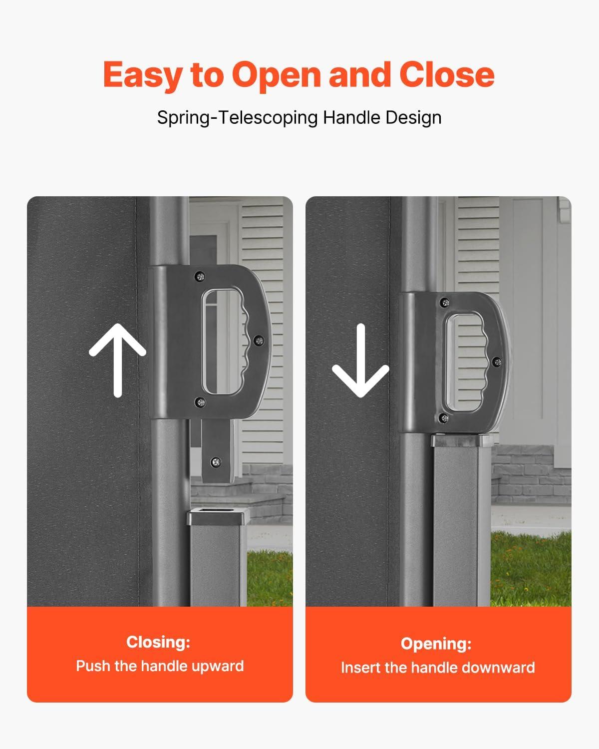 Effortless Operation: The retractable handle features a spring for smooth operation. Simply pull or push to adjust the side awning's extension and retraction. The upgraded spring handle is designed to prevent pinching, ensuring a better user experience.
