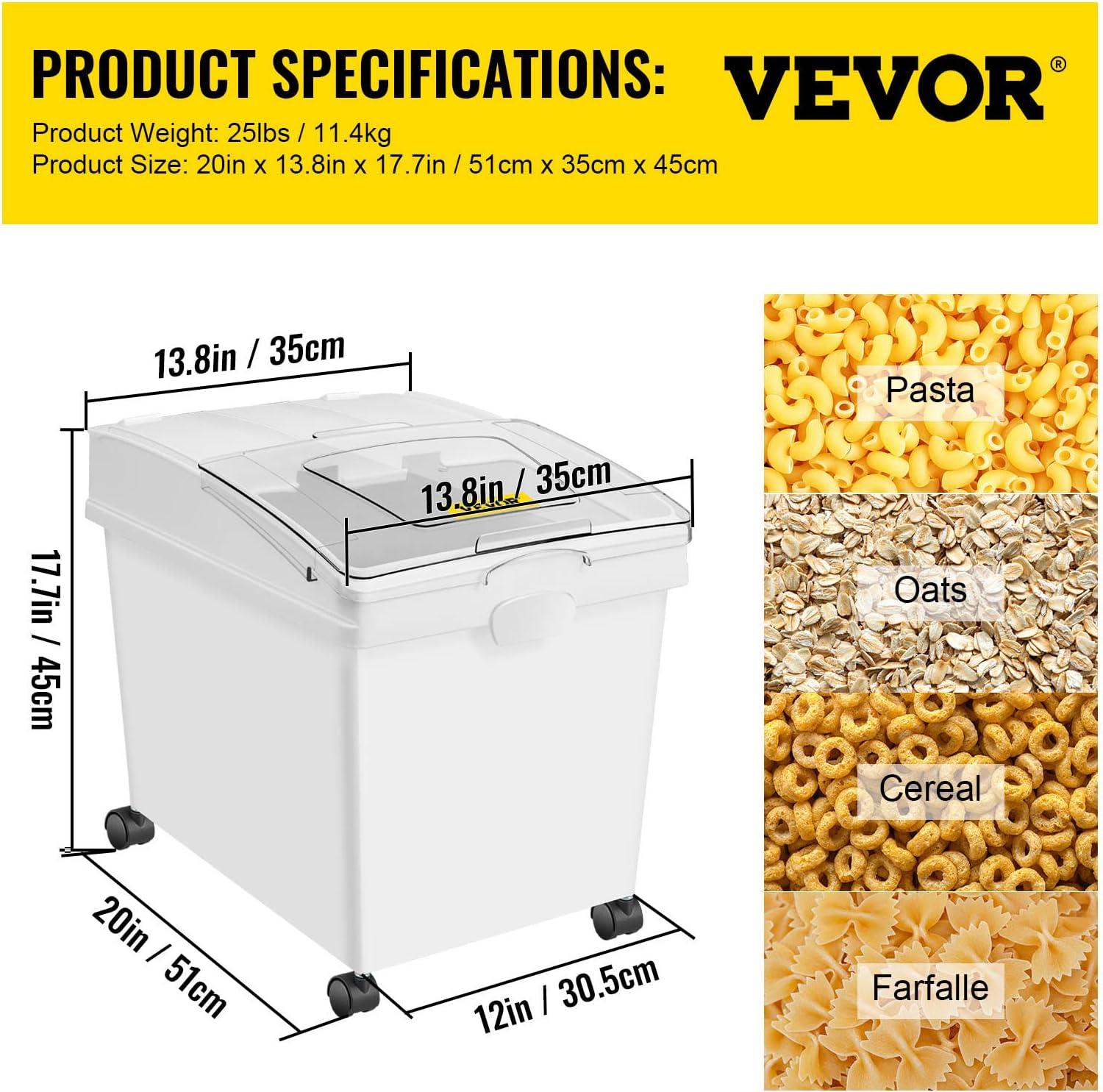 imageVEVOR Rice Storage Container 45Gallon20L x2 Capacity Large Dog Food Dispenser Bin Kitchen Ingredient Grain Cereal Flour Bin Pet food Containers with Wheels 2 Measuring Cups Airtight Lid 2 Pack114 Gallon
