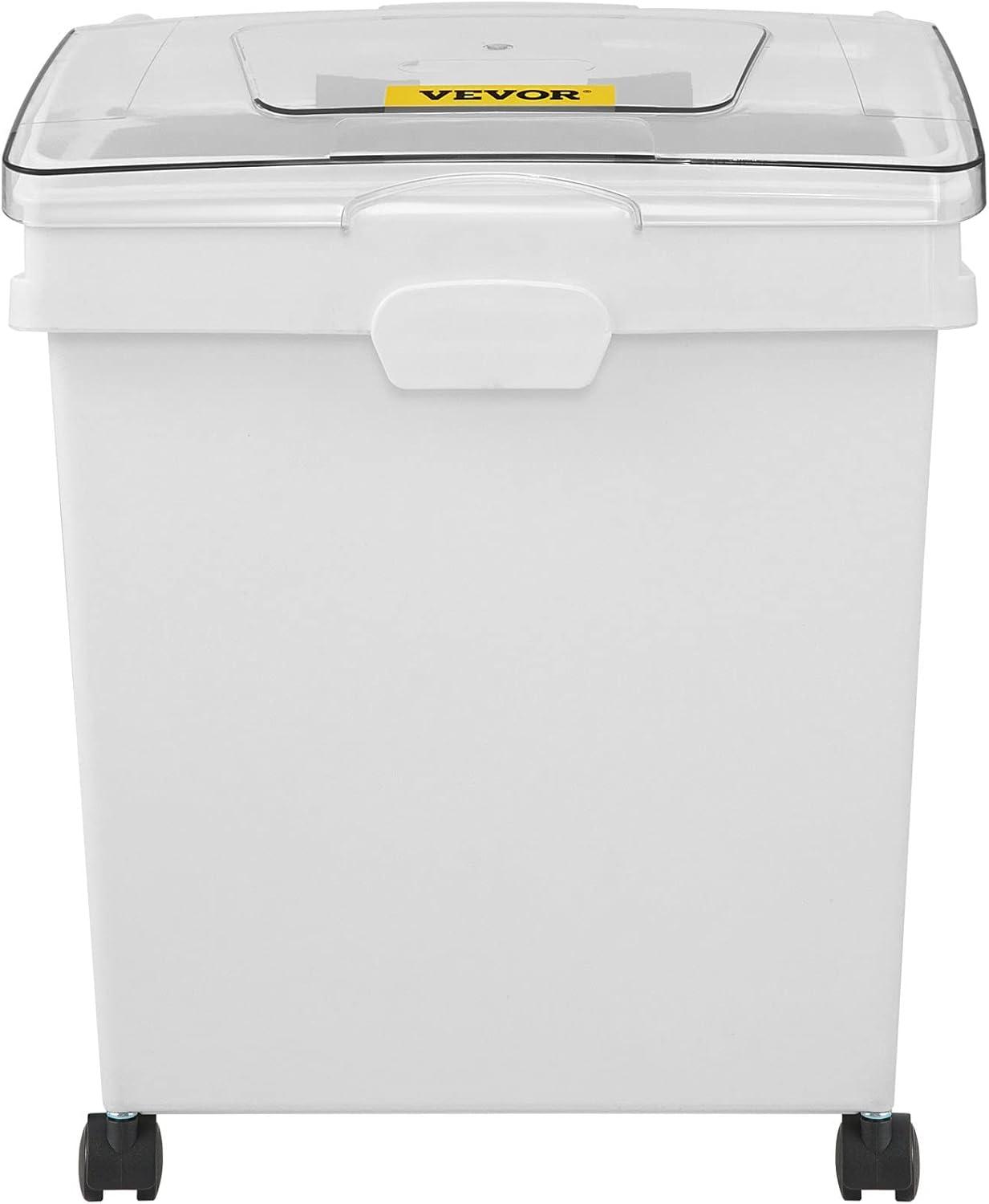 VEVOR Rice Storage Container, 4.5Gallon/20L x2 Capacity Large Dog Food Dispenser Bin, Kitchen Ingredient Grain Cereal Flour Bin, Pet food Containers with Wheels, 2 Measuring Cups, Airtight Lid, 2 Pack(5.2 Gallon*3)