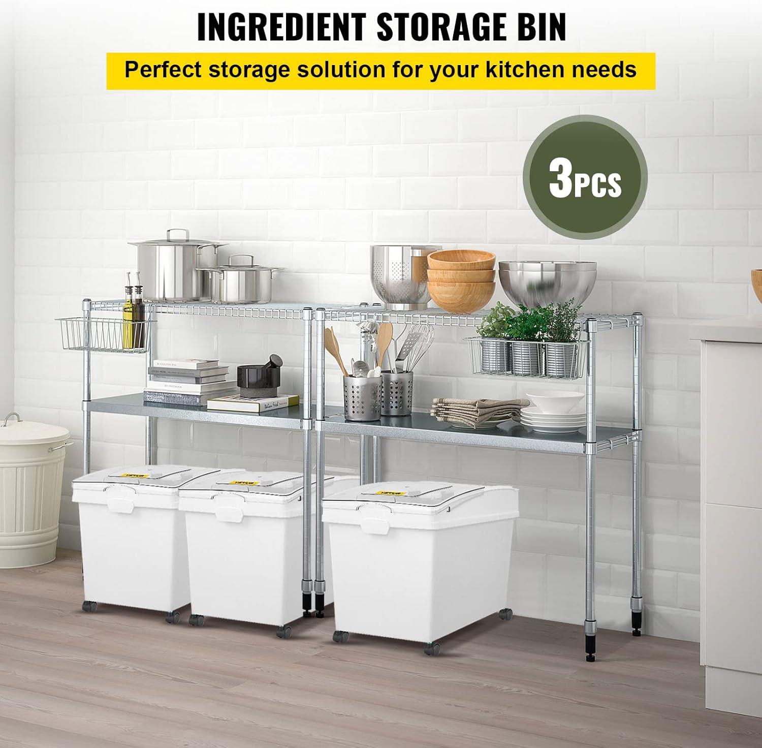 imageVEVOR Rice Storage Container 45Gallon20L x2 Capacity Large Dog Food Dispenser Bin Kitchen Ingredient Grain Cereal Flour Bin Pet food Containers with Wheels 2 Measuring Cups Airtight Lid 2 Pack105 Gallon 3 Set