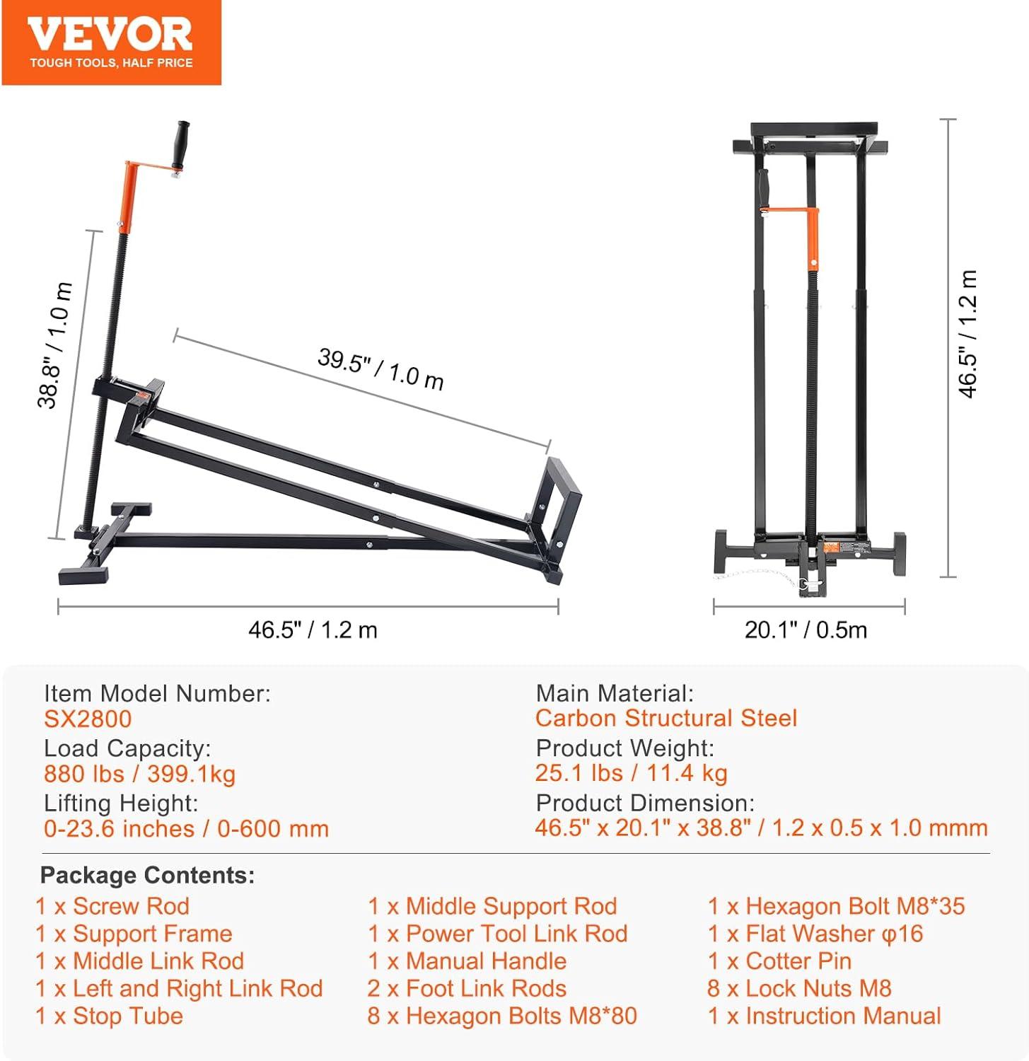 VEVOR Ride on Lawn Mower Lift Jack, 880 Lbs Weight Capacity, Telescopic Maintenance Jack with Crank Handle & Power Tool Handle, Foldable Lawn Tractor Lifter for Lawn Mowers and Garden Tractors, Black