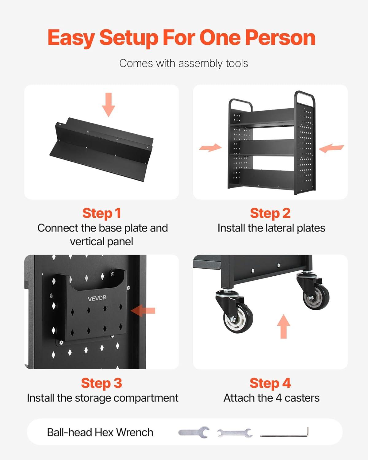 Quick Installation: No need for complex tools! The library book cart is easy to assemble with pre-drilled holes, so you’ll have it ready in no time. Includes an installation guide and extra screws for your convenience