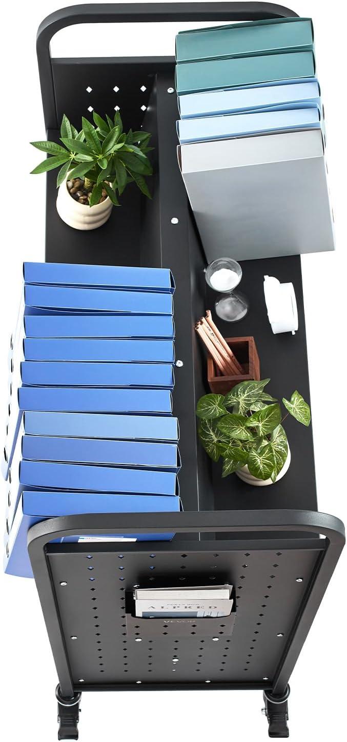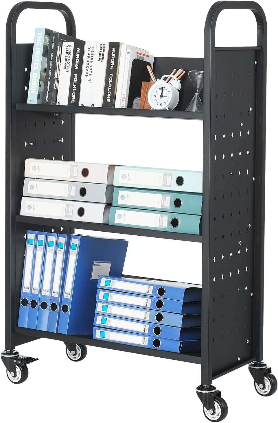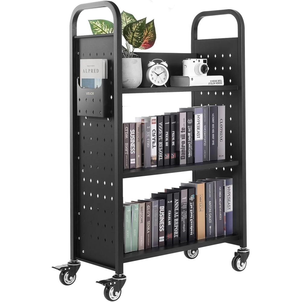 Extra Large Capacity: This 3-tier book cart with 14.17-inch high shelves holds a ton of books or office supplies! It’s also equipped with side compartments for A4 folders/tablets—ideal for libraries, home use, and more