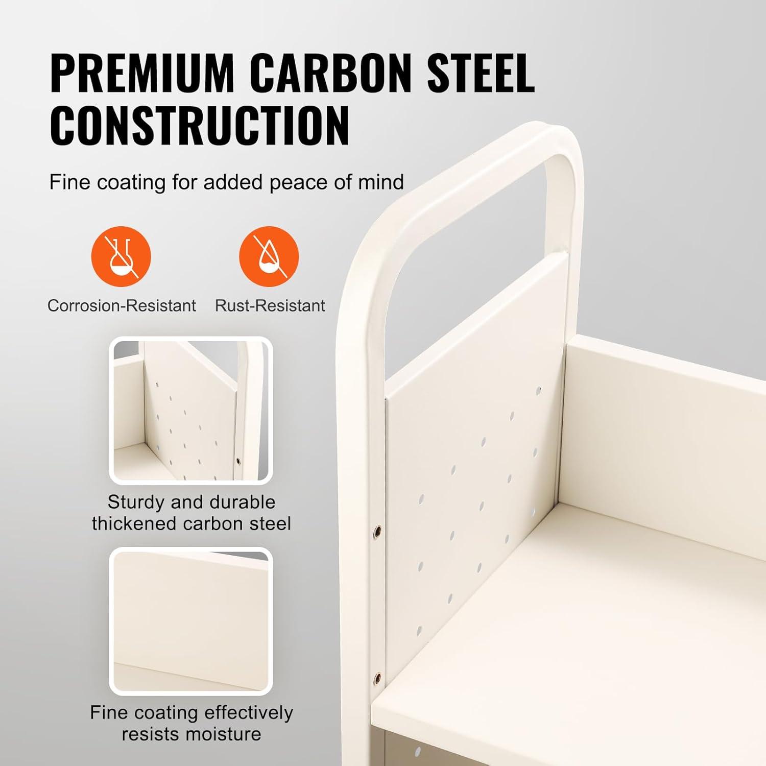 Extra Large Capacity: This 3-tier book cart with 14.17-inch high shelves holds a ton of books or office supplies! It’s also equipped with side compartments for A4 folders/tablets—ideal for libraries, home use, and more
