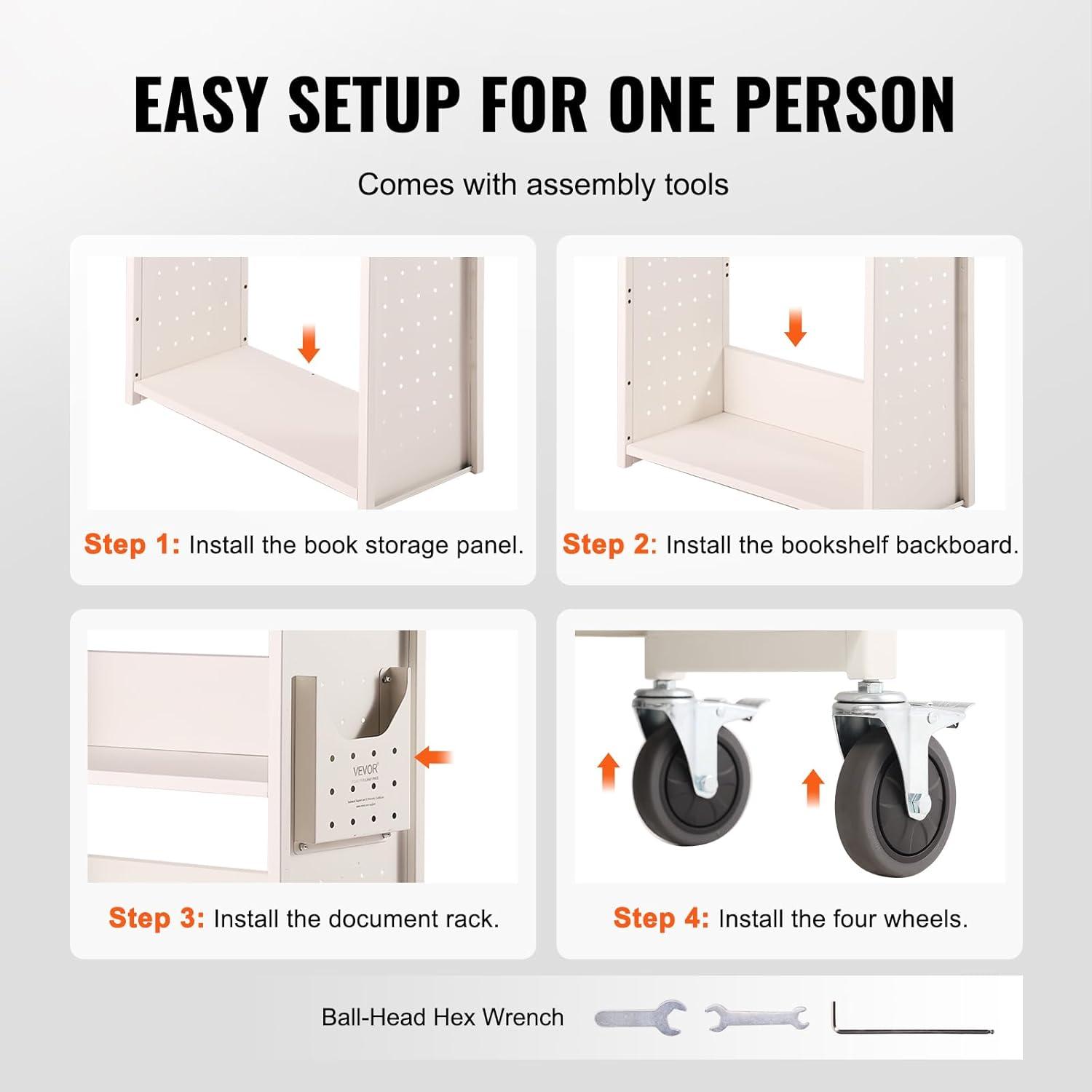 Quick Installation: No need for complex tools! The library book cart is easy to assemble with pre-drilled holes, so you’ll have it ready in no time. Includes an installation guide and extra screws for your convenience