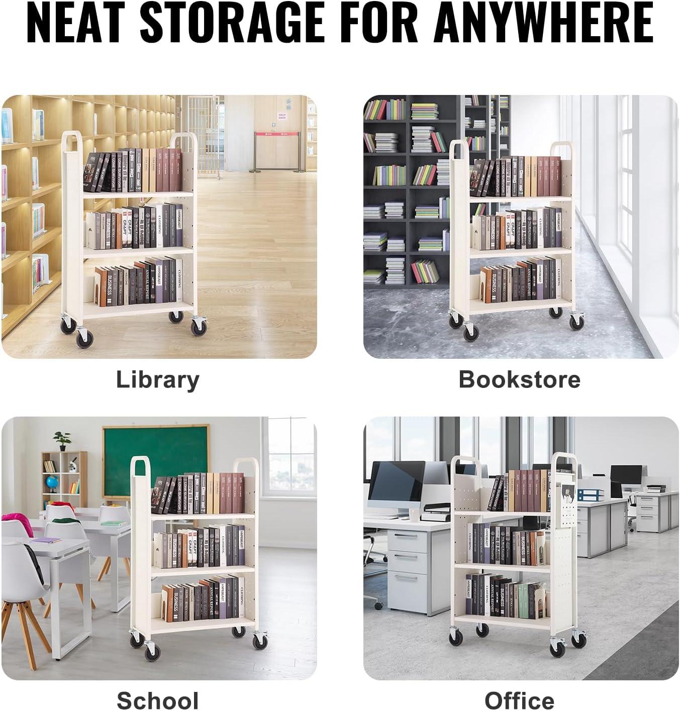 Versatile Use: Ideal for library restocking, transporting school supplies, distributing office documents, or organizing books and items at home. This rolling book shelf is your go-to solution for work and home needs