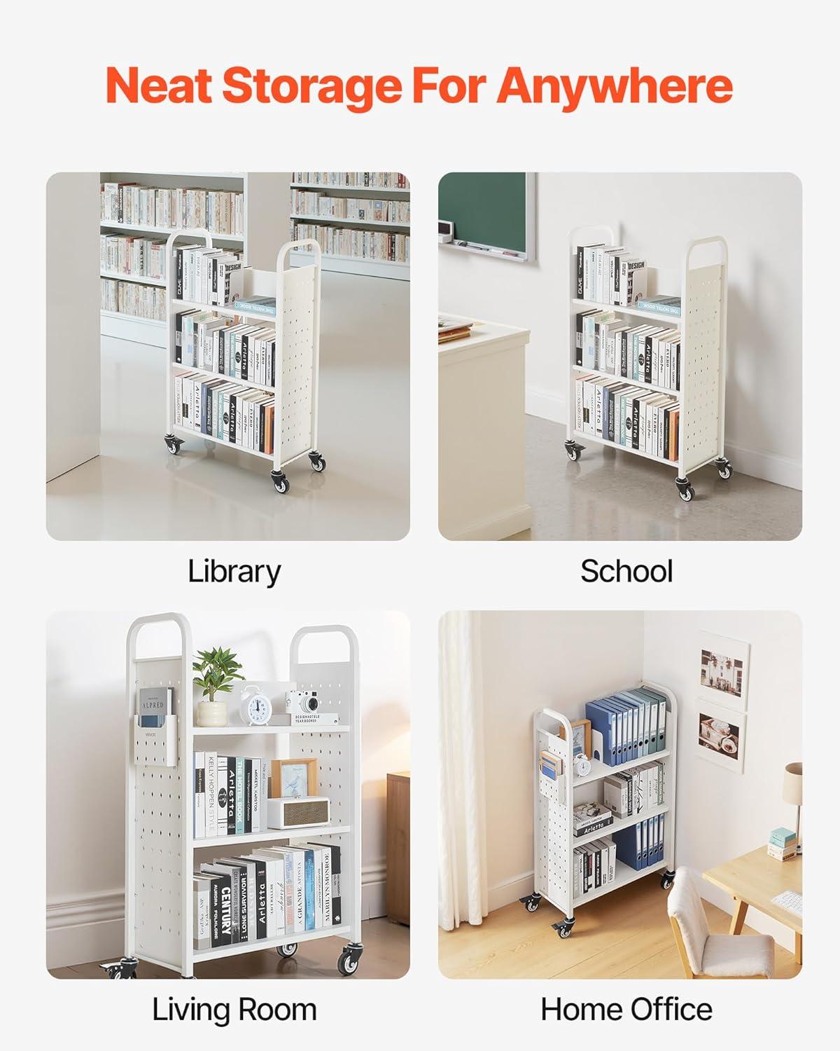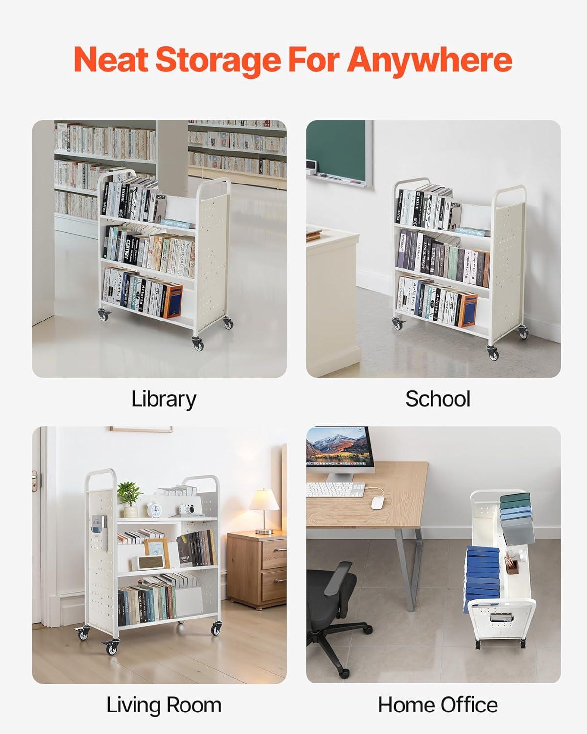 Versatile Use: Ideal for library restocking, transporting school supplies, distributing office documents, or organizing books and items at home. This rolling book shelf is your go-to solution for work and home needs