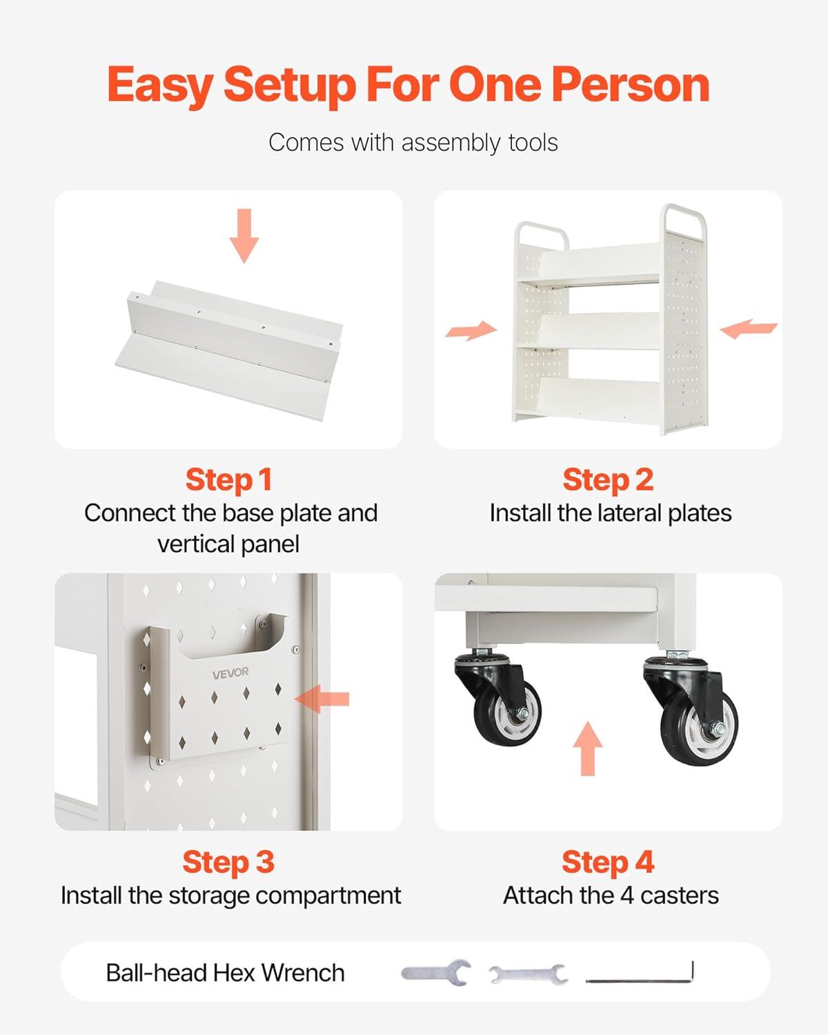 Quick Installation: No need for complex tools! The library book cart is easy to assemble with pre-drilled holes, so you’ll have it ready in no time. Includes an installation guide and extra screws for your convenience