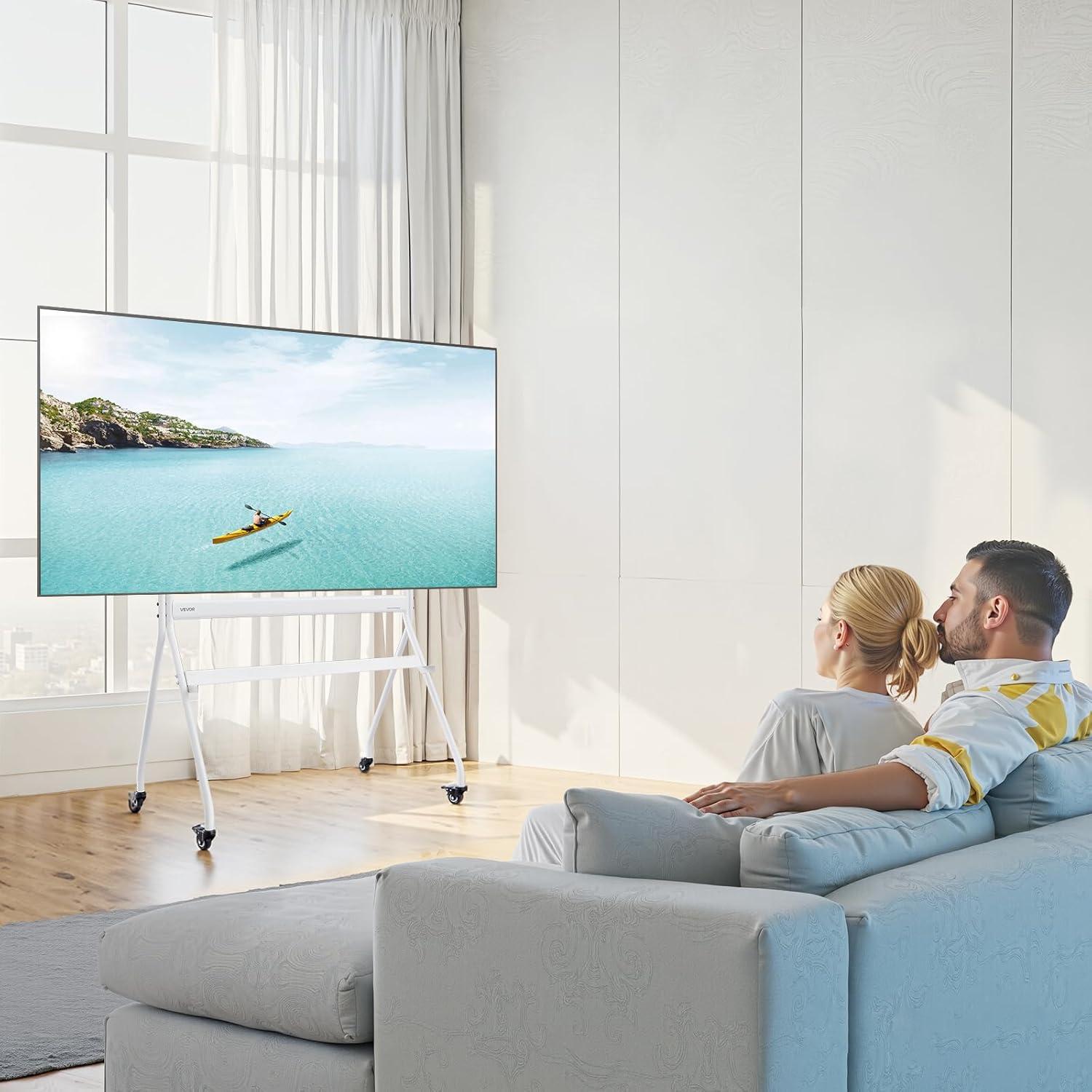 Stability and Security: Our moving TV stand offers exceptional stability, supporting up to 198 lbs to prevent tipping. The adjustable tilt design also allows you to customize the viewing angle according to your preferences, ensuring the ideal experience every time you watch.