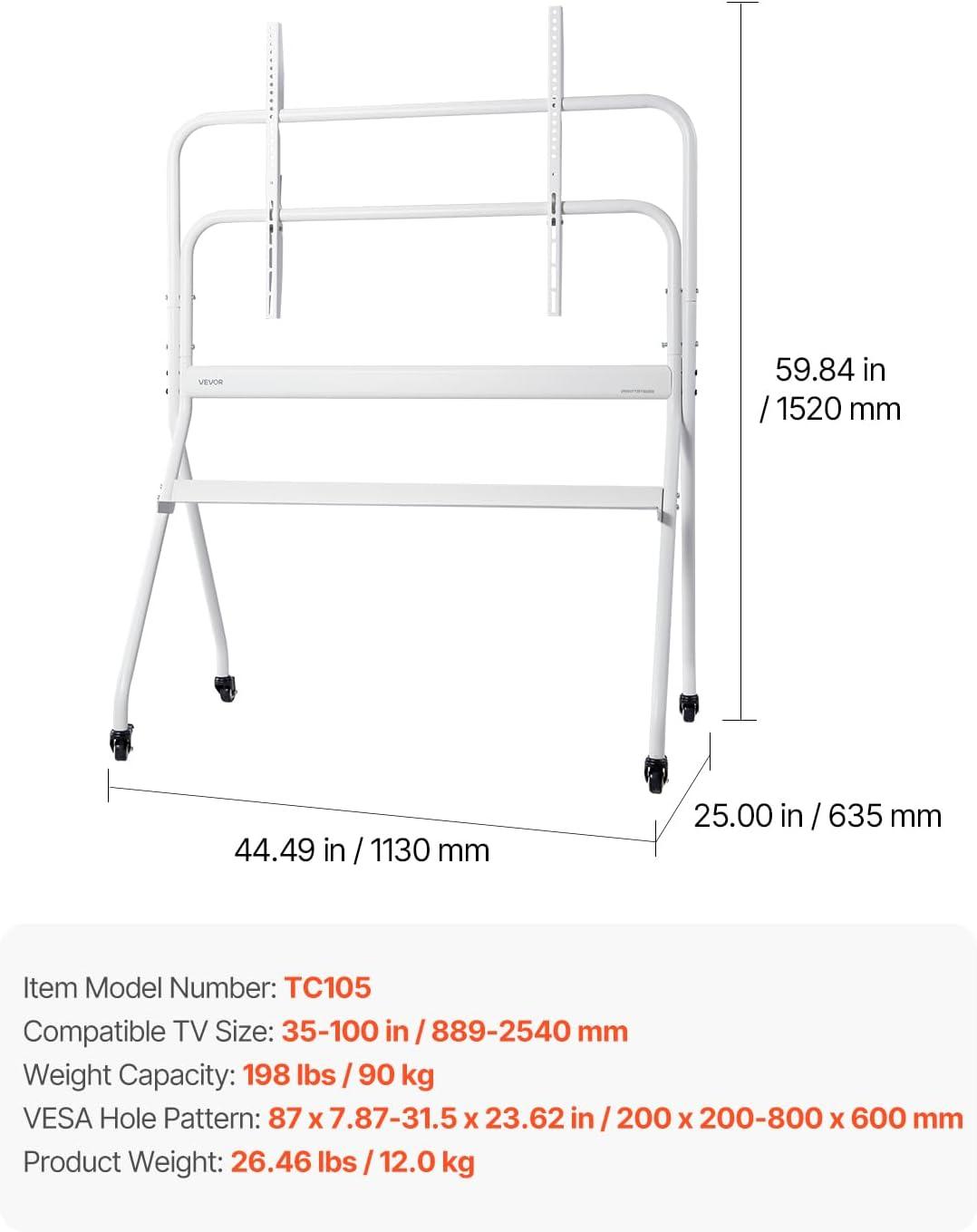 Universal Compatibility: This rolling TV stand is designed for 35-100 in LED, LCD, and OLED flat and curved TVs, supporting VESA mounting patterns from 200 x 200 to 800 x 600 mm. It ensures ideal compatibility with your TV, making installation easy regardless of the size or type of your TV.