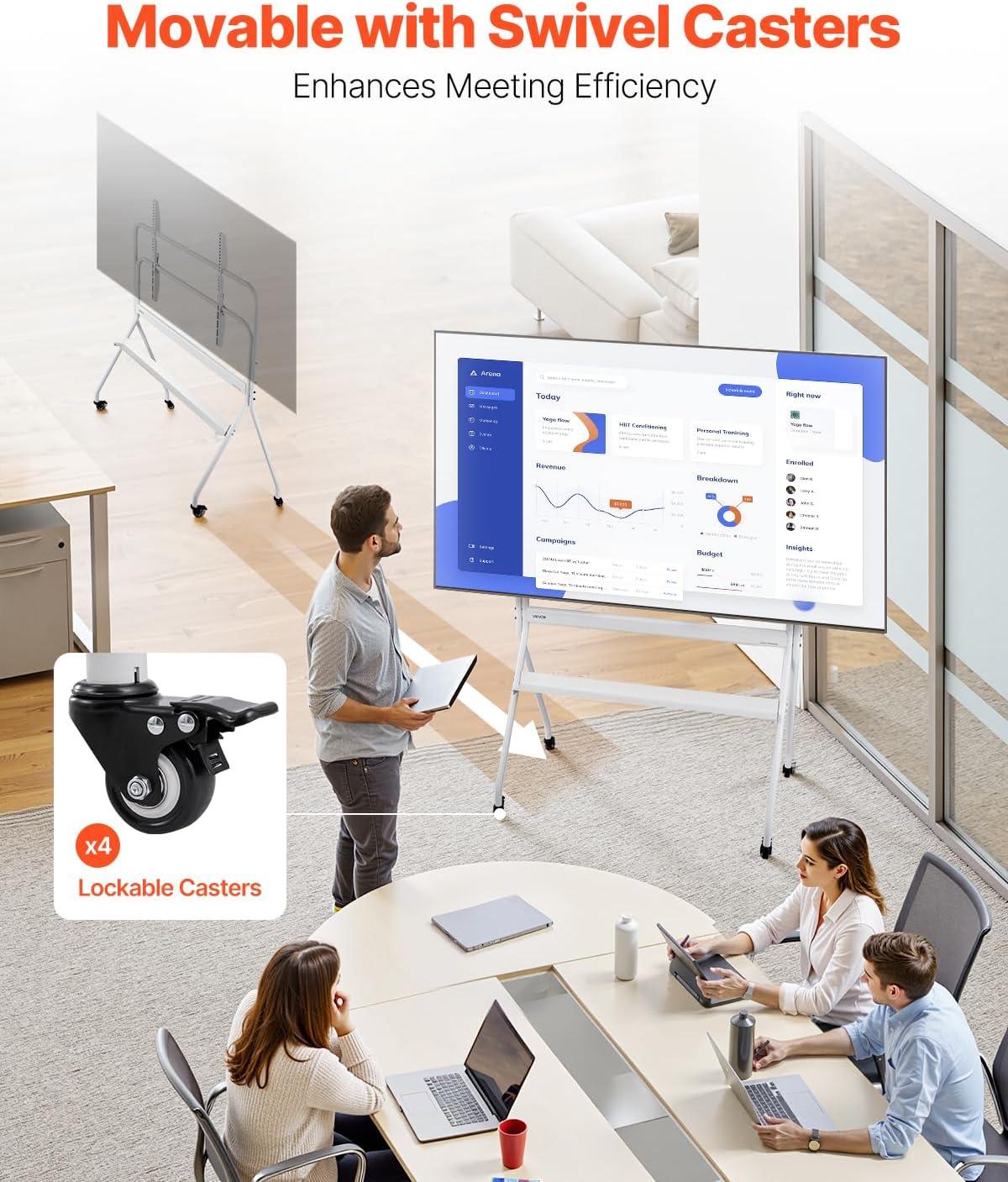 Convenient Mobility: Equipped with swivel wheels, this mobile TV mount allows you to effortlessly rotate to adjust angles or move it to your desired position. You can easily slide it to different spots in the room.