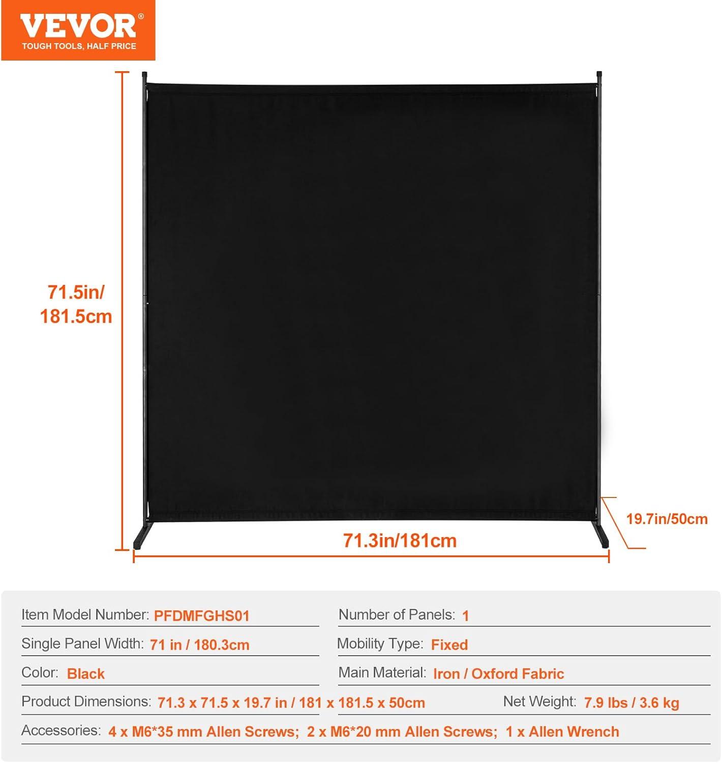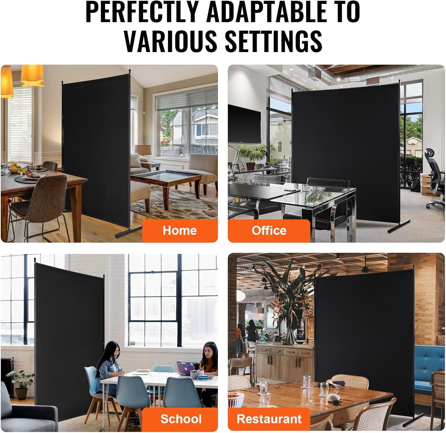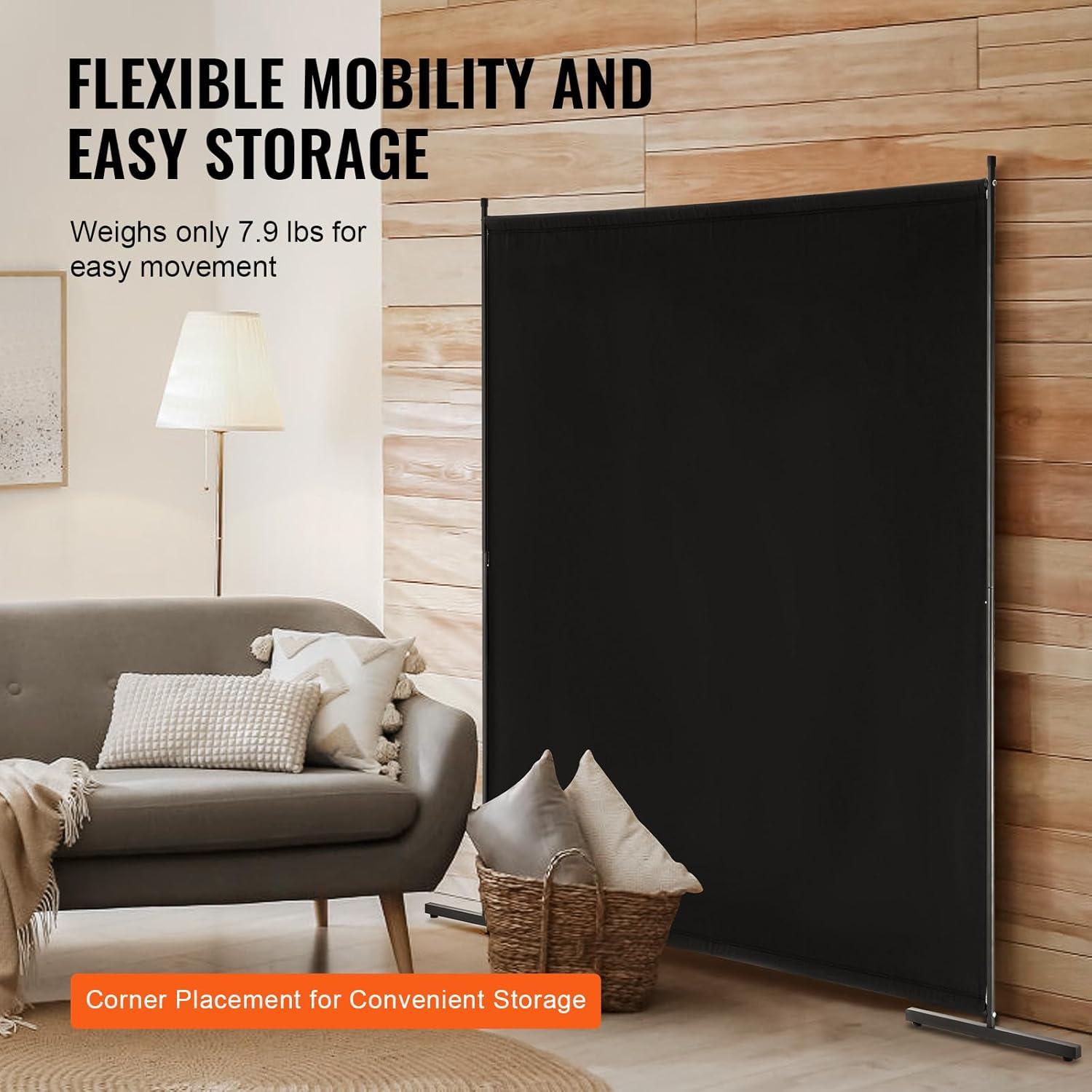 VEVOR Room Divider, Single Panel Room Divider, 6FT Privacy Screen Indoor, Partition Divider for Room Separation, Freestanding Room Divider Panel for Office, Bedroom, Beige(Black)