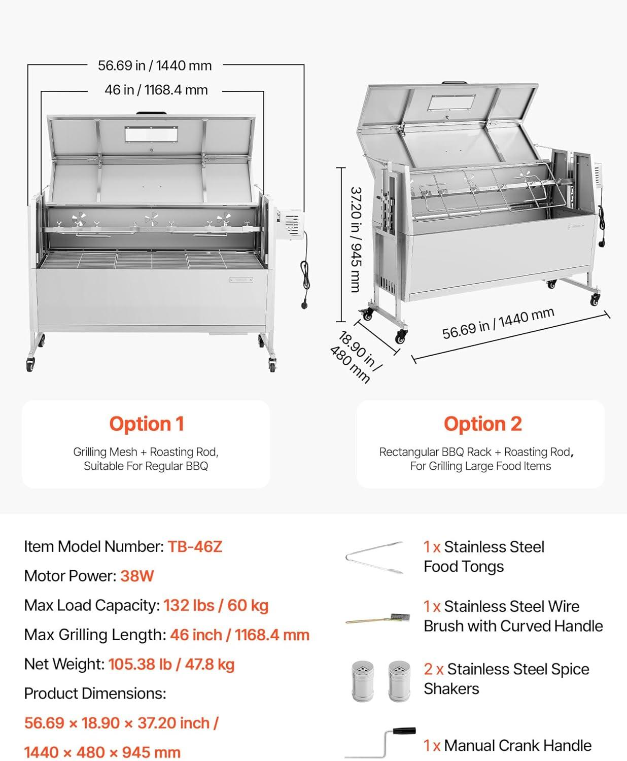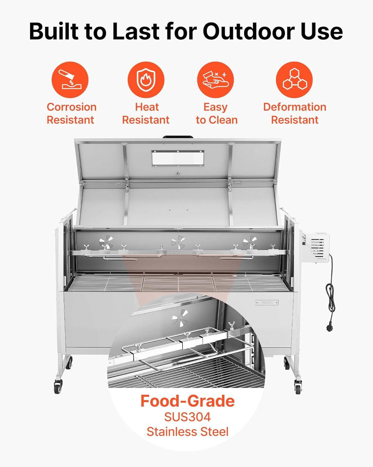 VEVOR Rotisserie Grill, 56in Electric Rotisserie Grill Kit 8 Level Height, BBQ Grills Rotisseries Kit with 132 lbs Load Capacity, Asador de Puerco, Stainless Steel Automatic Grilling Kits for Parties(56″)