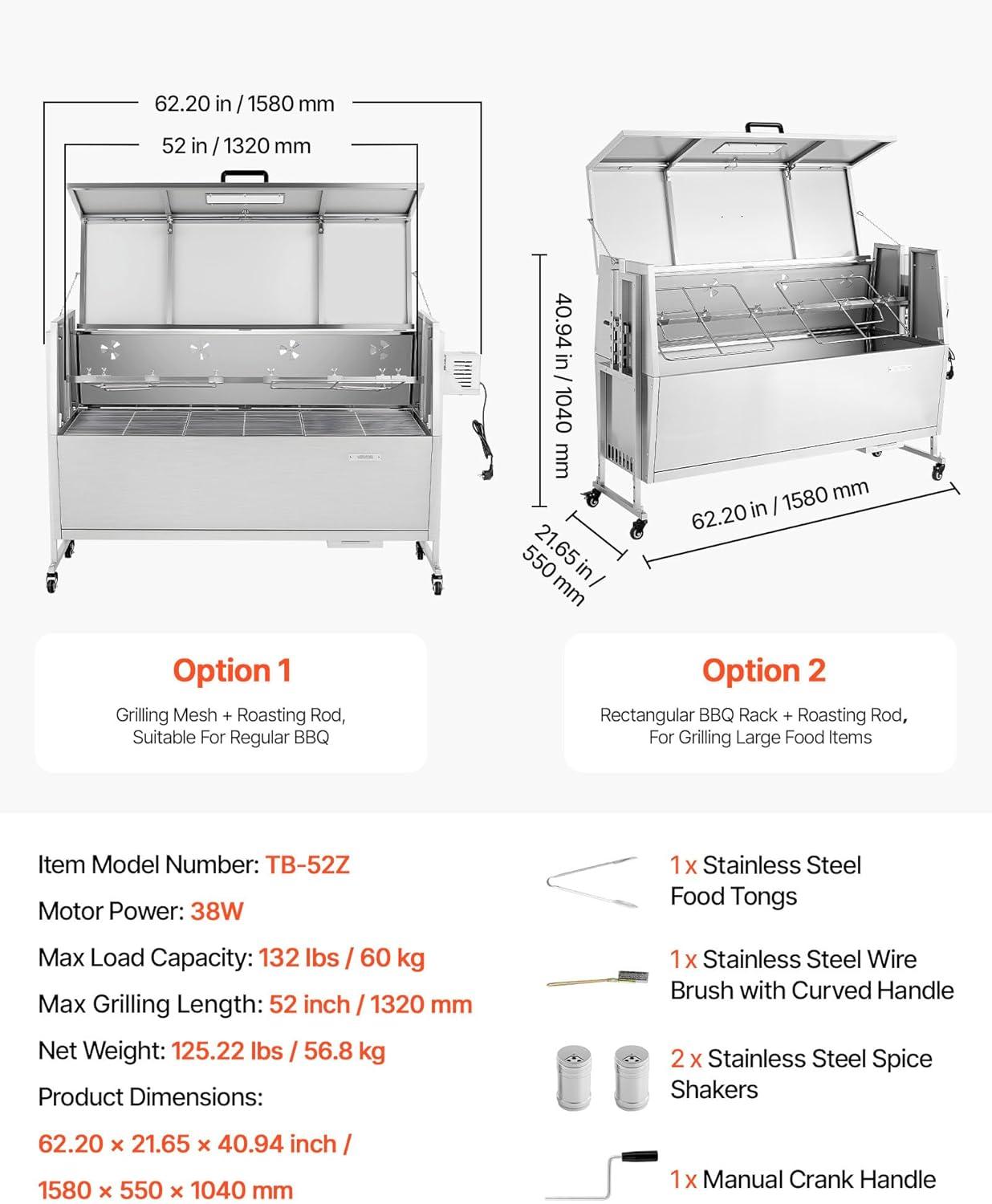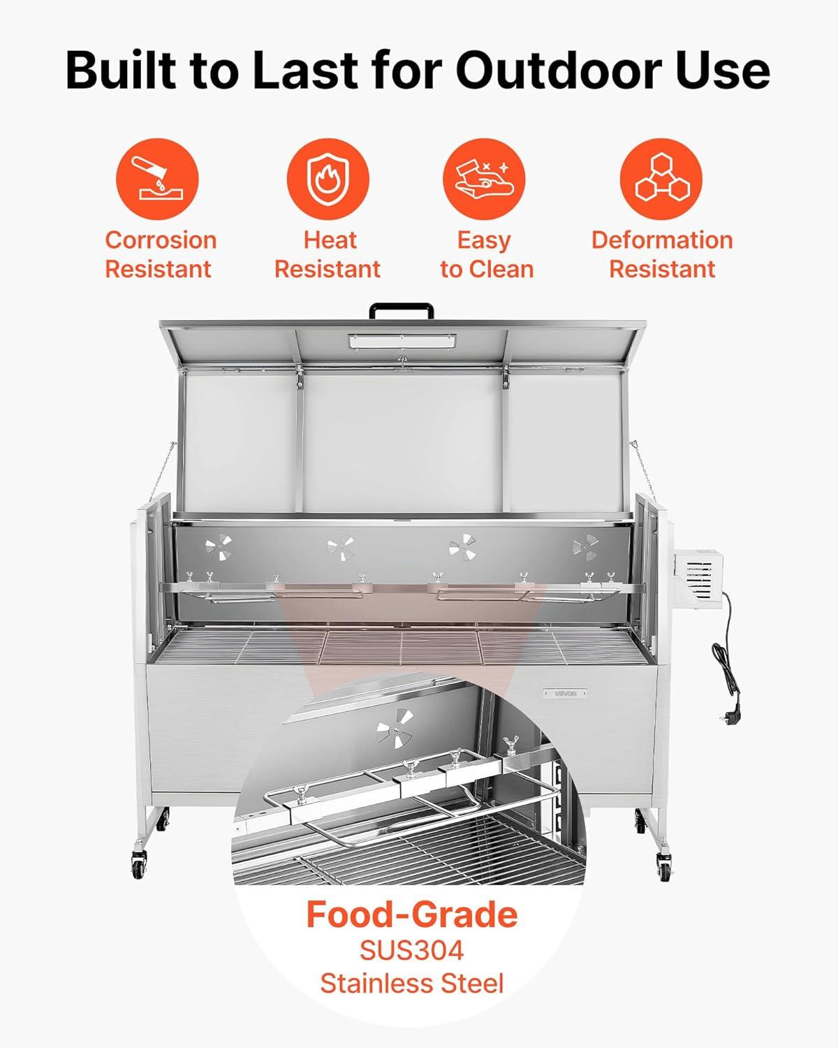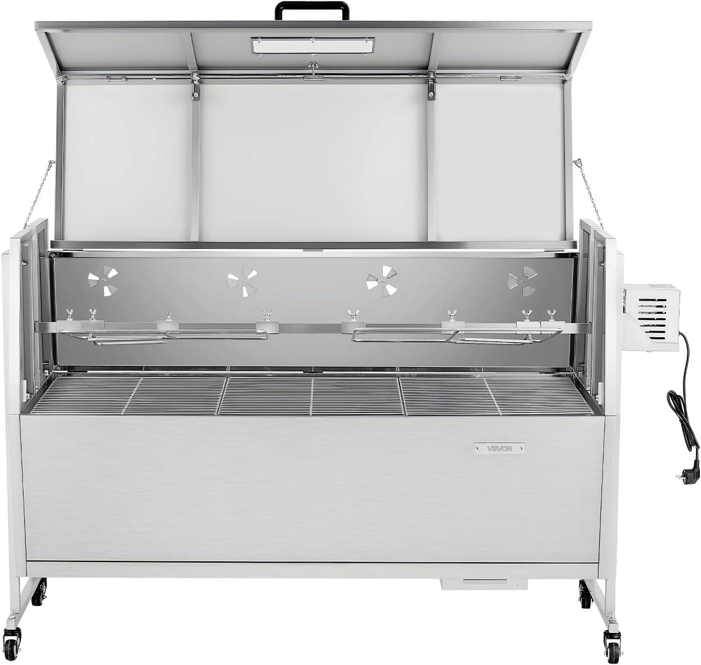 VEVOR Rotisserie Grill, 56in Electric Rotisserie Grill Kit 8 Level Height, BBQ Grills Rotisseries Kit with 132 lbs Load Capacity, Asador de Puerco, Stainless Steel Automatic Grilling Kits for Parties(52″ with Hood)