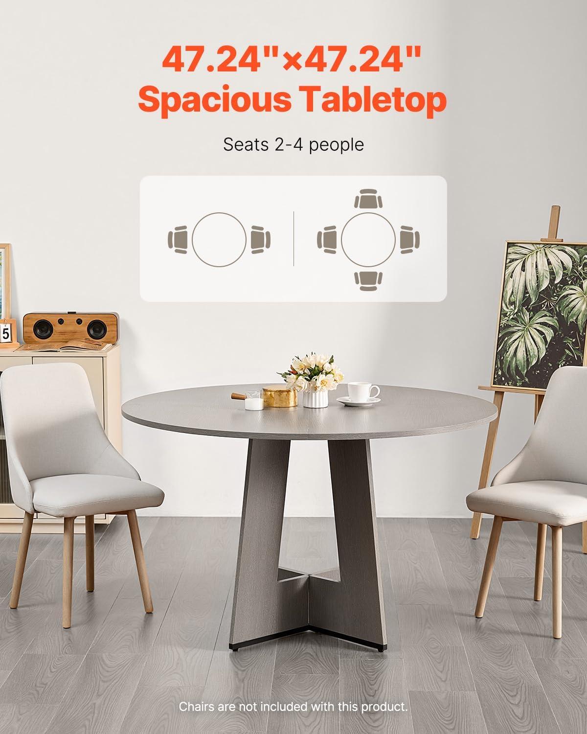 Spacious Dining Table: This round dining table has a tabletop diameter of 47.24″, with a compact yet elegant design that comfortably seats 4-6 people, making it an ideal choice for smaller spaces. Its spacious surface offers ample working space within limited space, providing convenience and comfort for dining, working, reading, or casual conversations