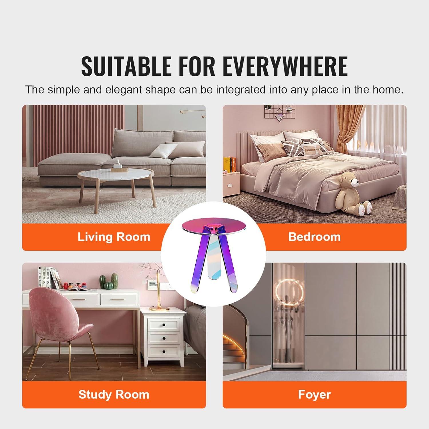 VEVOR Round Iridescent Side Table, Acrylic End Table, Clear Rainbow Acrylic Coffee Table for Drink, Food, Snack Used in Living Room, Bedroom, and Study(Round)