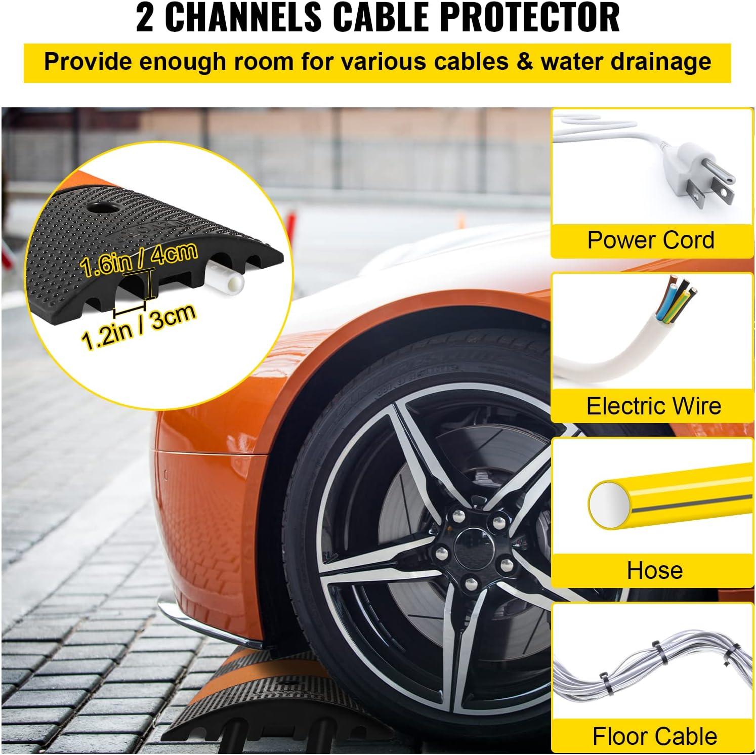 VEVOR Rubber Speed Bump (2 Pack) - 6 FT Heavy Duty 22,000 lbs Capacity for Road & Driveway, 72.8" x 12.2" x 2.2" Modular Traffic Hump, 2 Channel Floor Cord Cover for Asphalt, Concrete, Gravel(2 Pack)