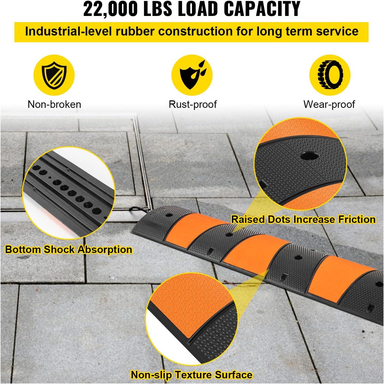 VEVOR Rubber Speed Bump (2 Pack) – 6 FT Heavy Duty 22,000 lbs Capacity for Road & Driveway, 72.8″ x 12.2″ x 2.2″ Modular Traffic Hump, 2 Channel Floor Cord Cover for Asphalt, Concrete, Gravel(2 Pack)