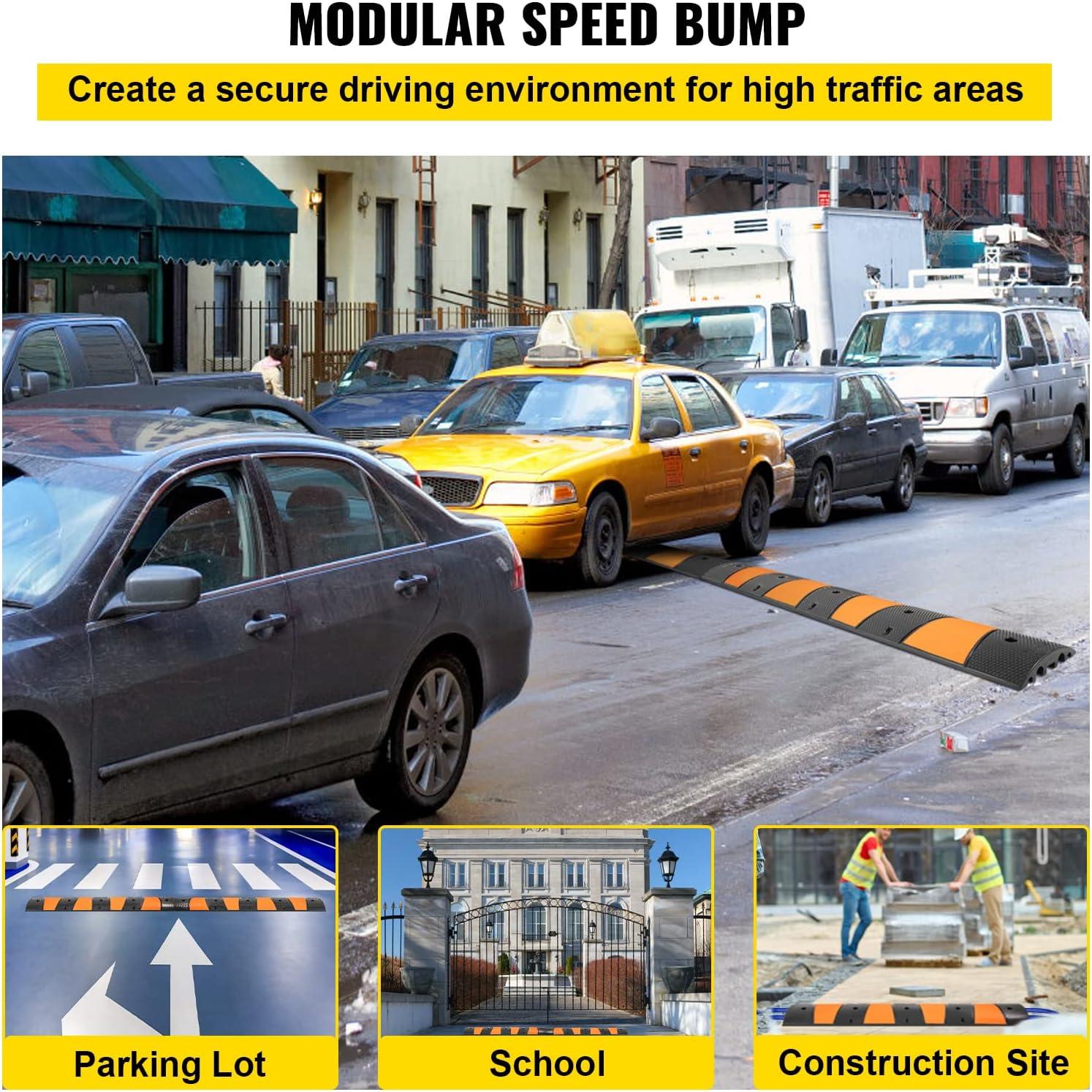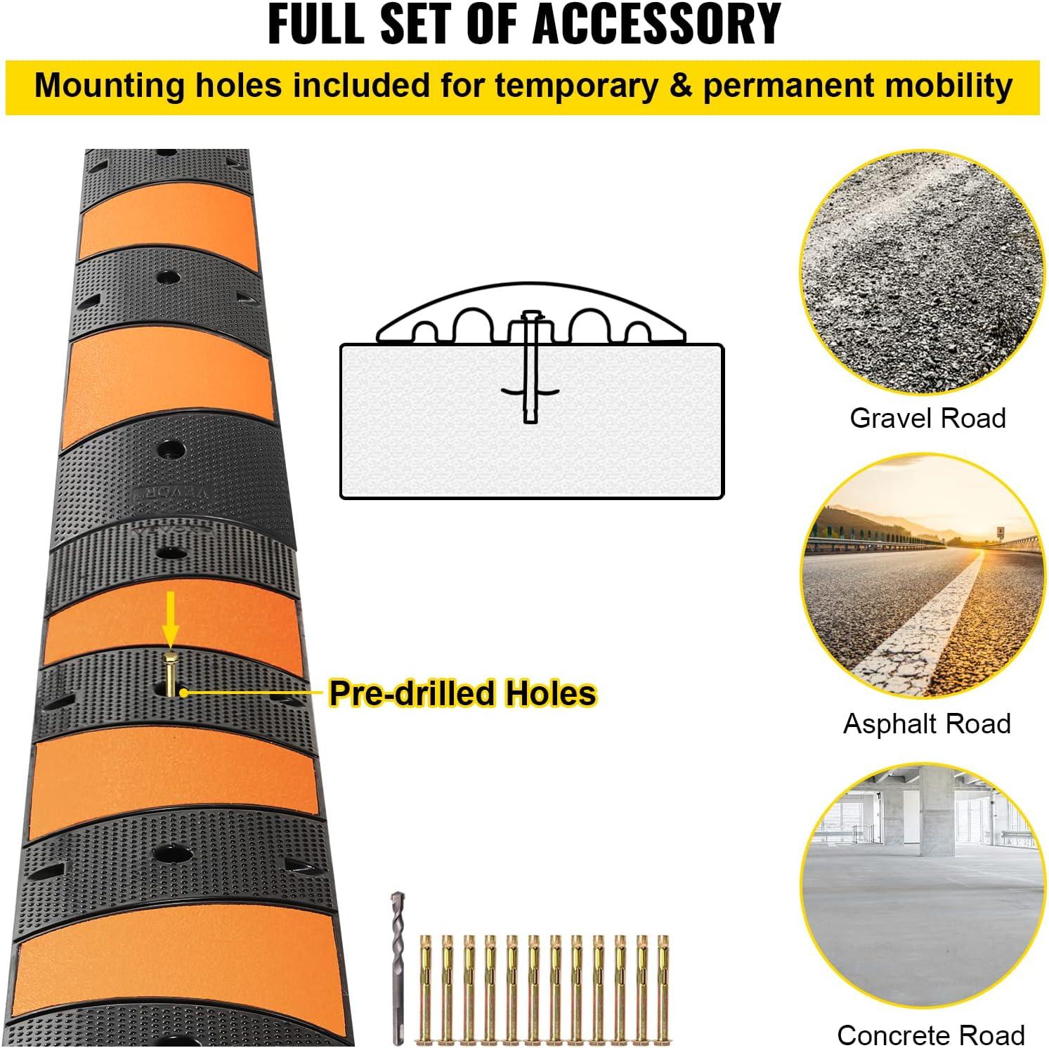 Complete Accessory: With included mounting bolts can permanently/ temporarily install and fasten speed bumps on gravel, asphalt, and concrete roads. Modular design allows multiple speed bumps to be connected to cover the longer cables.
