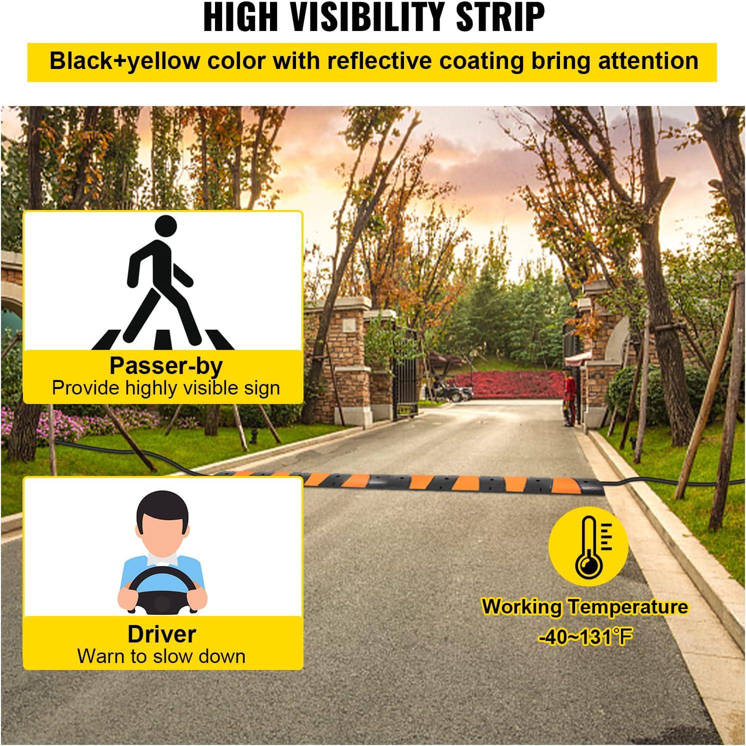 VEVOR 2PCs 6 ft/72” Rubber Speed Hump, 2 Channel, 22000 lbs Capacity Heavy Duty Traffic Speed Bump, with High Reflective Yellow Strip 8 Expansion Screws and 1 Drill, for Asphalt Concrete Gravel Roads(2 PCs)