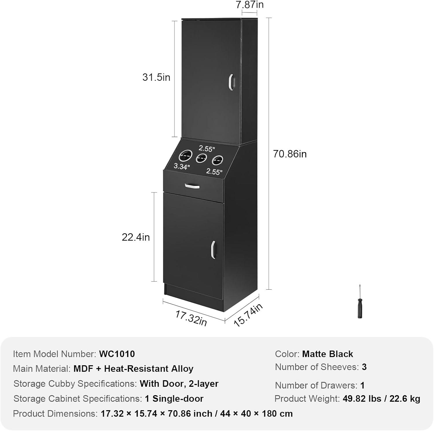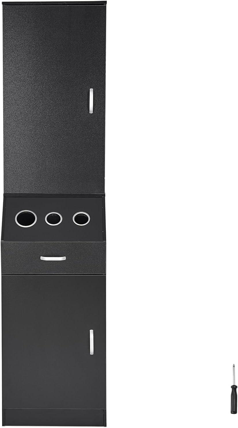 VEVOR Salon Storage Cabinet, Barber Salon Station for Hair Stylist, Hair Stylist Station Set, with 3 Hair Dryer Holders, Cabinets, and A Drawer, Black(Wall Mount Styling Station 3)