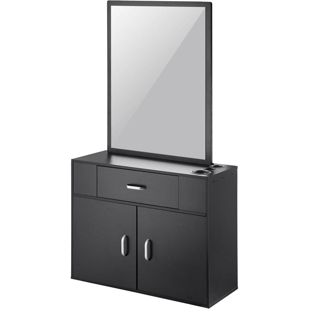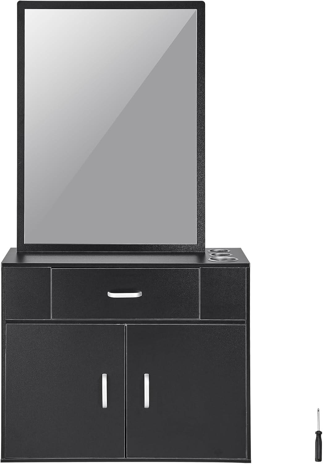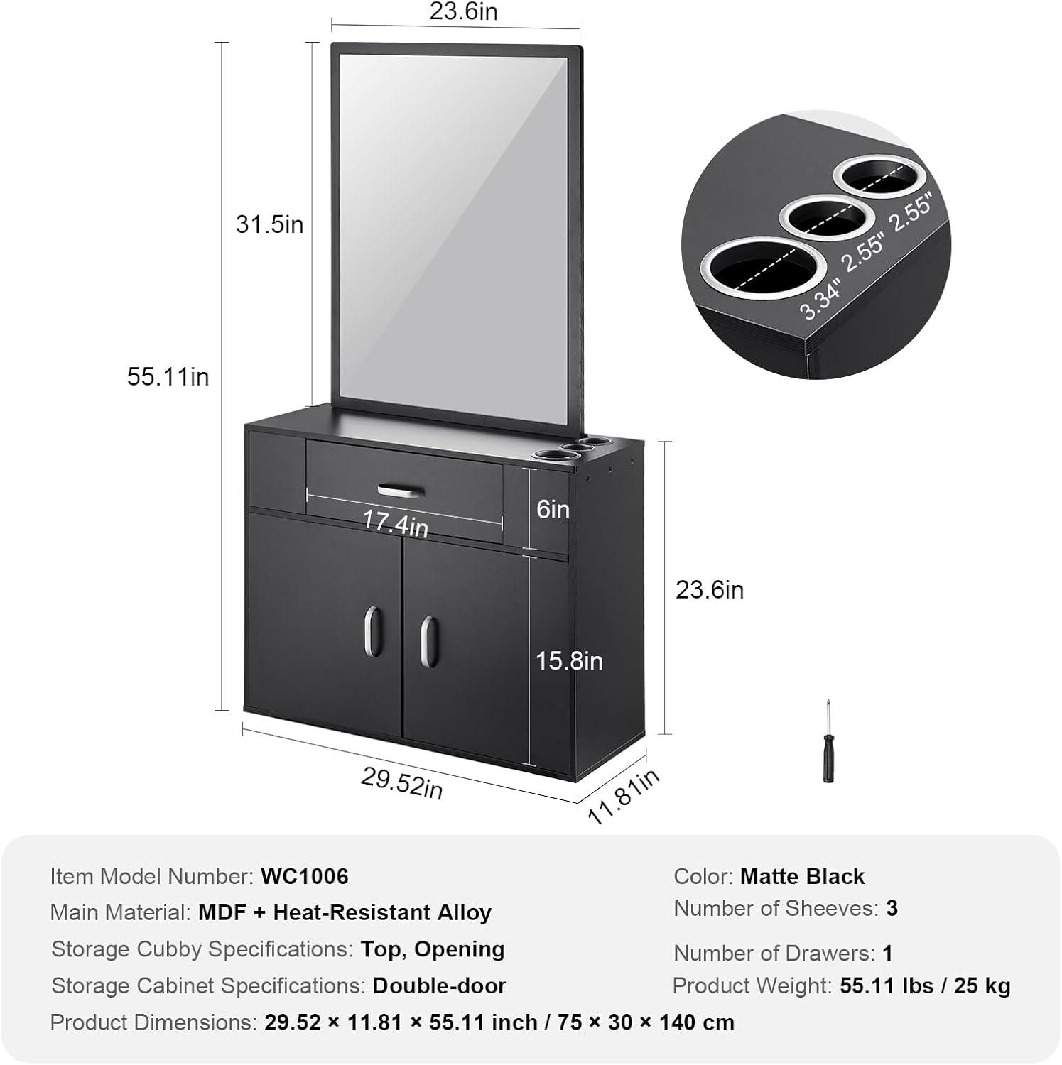 Durable Material: Constructed with a thickened MDF board and a matte black PVC double-decorative surface, our salon station for hair stylists is waterproof and easy to clean. Its versatile design complements various interior decor styles, enhancing aesthetics.