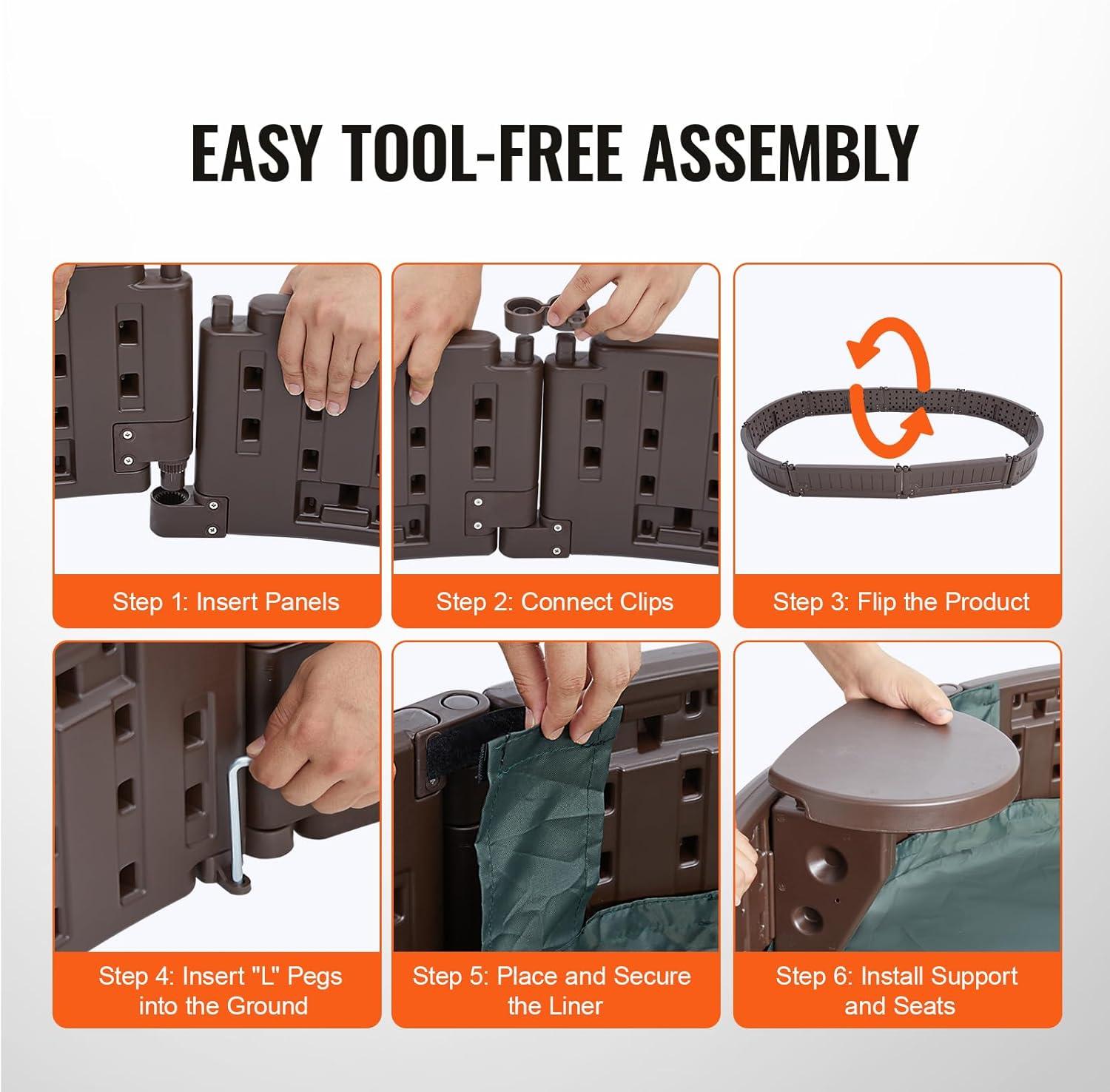Easy Assembly: Our kids sandbox is easy to assemble with no tools required. Simply insert the panels into the slots, place the liner, and attach the seats. Clear installation instructions are included to help you create the perfect children's play space in no time.