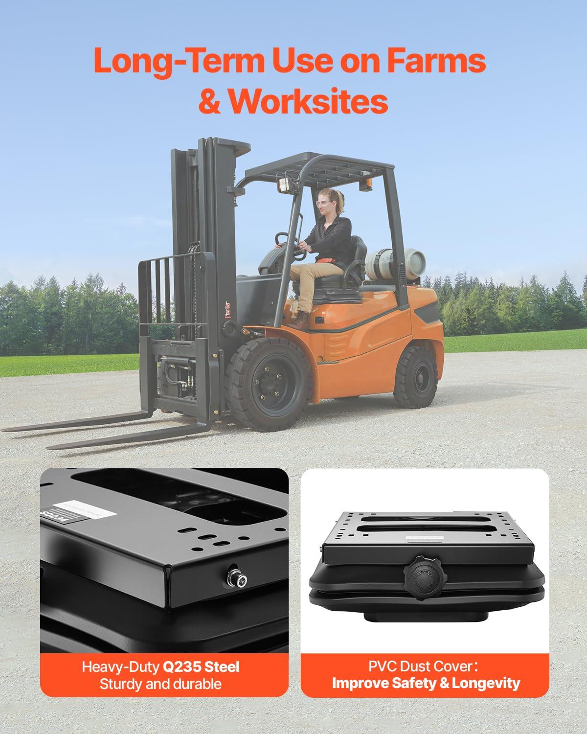 Comfortable Operation: The forklift seat suspension kit features 65mn high-strength springs with 45mm (2″) shock absorption, ideal for users weighing 50-130kg. It significantly reduces back strain, providing comfort during long hours of operation.