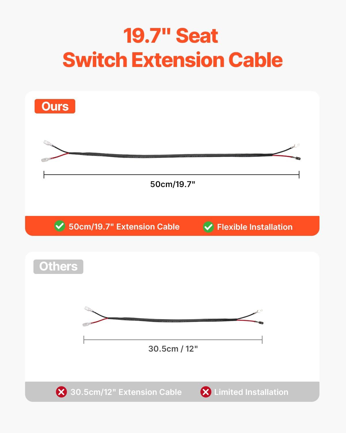 Flexible Installation: Includes a 50cm (19.7″) switch extension wire, allowing flexibility for different wiring needs. Once installed, the lawn mower seat suspension kit can be adjusted forward and backward by 150mm (6 inches) for added comfort and convenience.