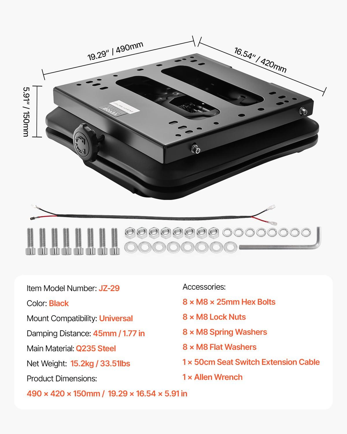 Versatile Compatibility: Equipped with 8 additional mounting holes, this tractor seat suspension kit fits various machines like lawnmowers, forklifts, tractors, and bulldozers. Easily replace old suspension systems, enhancing stability and operational comfort.
