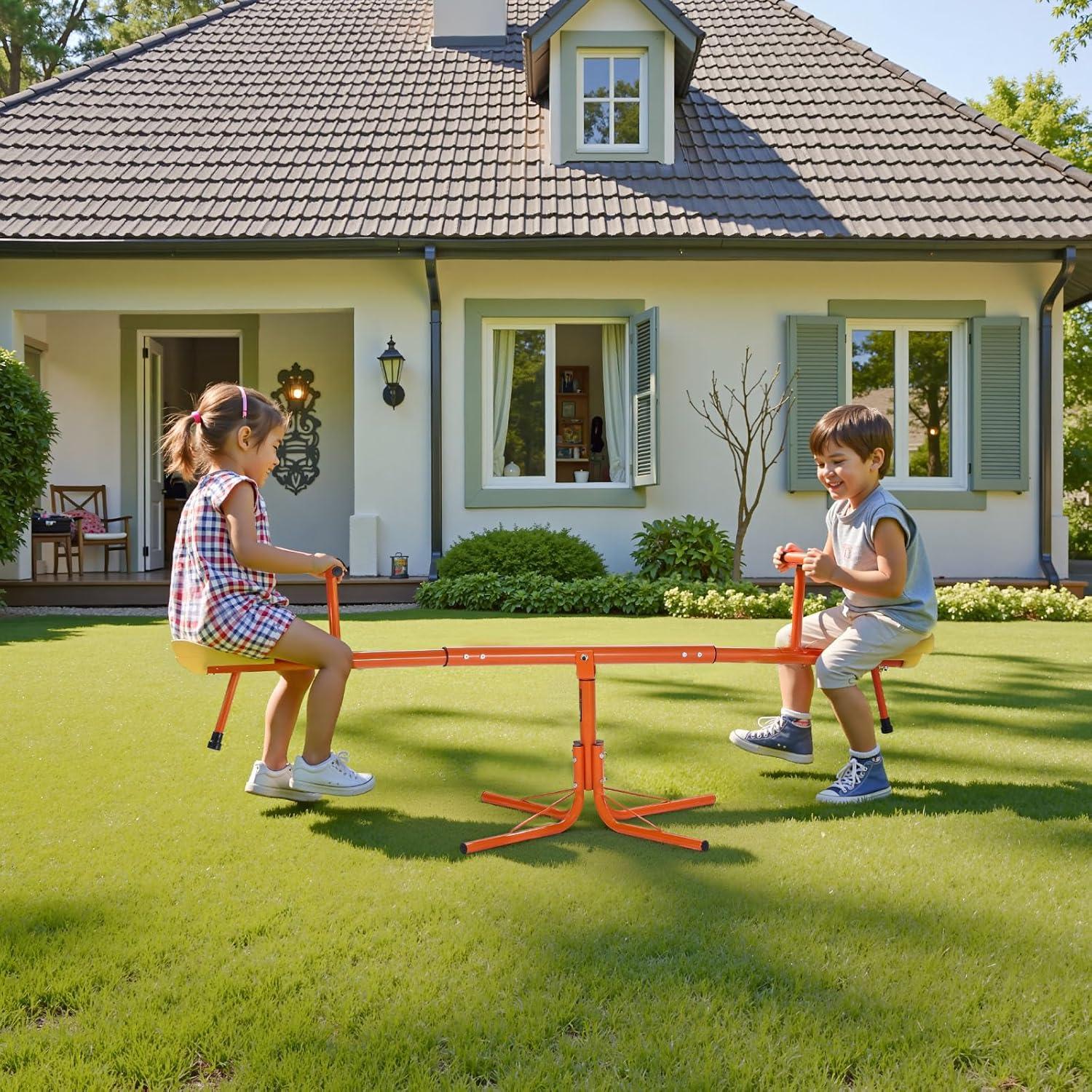 [Easy Setup] : Simple, tool-free assembly! The rust-proof frame of spin teeter totter is ideal for both indoor and outdoor use, providing endless fun wherever you play
