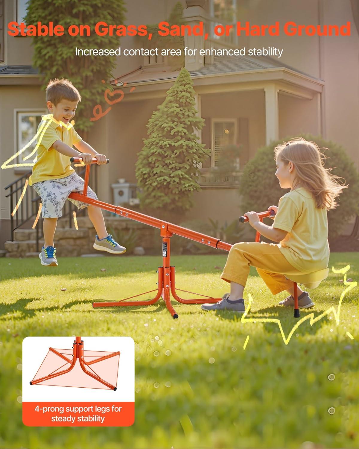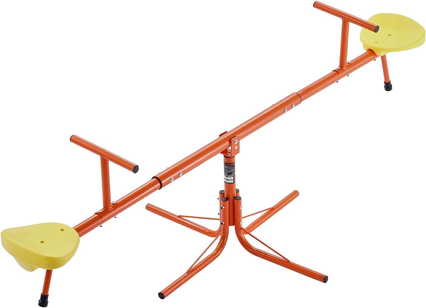 VEVOR Seesaw Teeter Totter for Kids Outdoor, 100 lbs Load Capacity per Seat, Sit and Spin Teeter Totter with 3-Prong Support Legs, Playground Equipment with Swiveling 360 Degrees Rotating for Aged 3+(Orange)