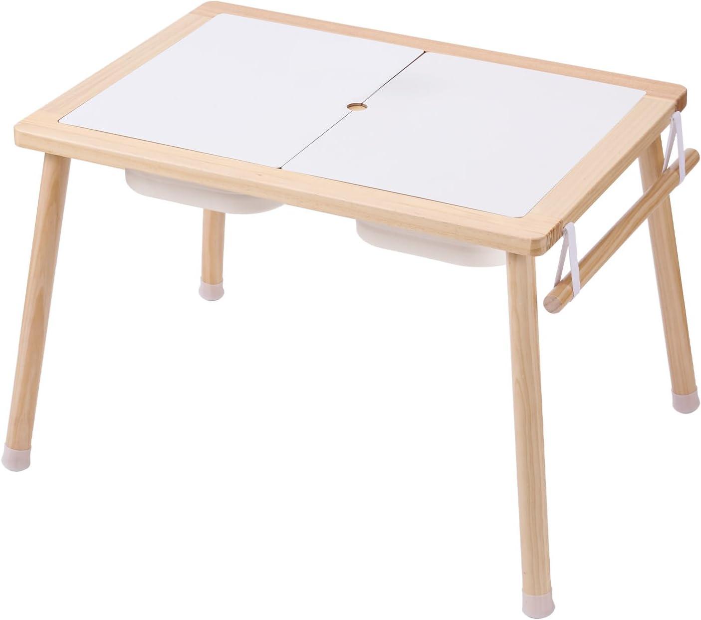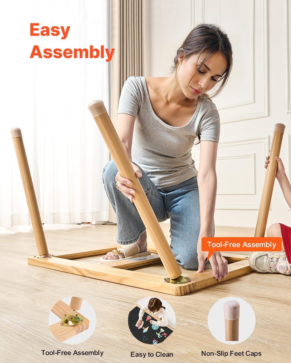 Natural Pine Wood Construction: The tabletop and legs are crafted from smooth natural pine with no sharp edges and finished with child-secure varnish. The 1 in top with MDF supports up to 66 lbs, making our kids play table sturdy, secure, and long-lasting