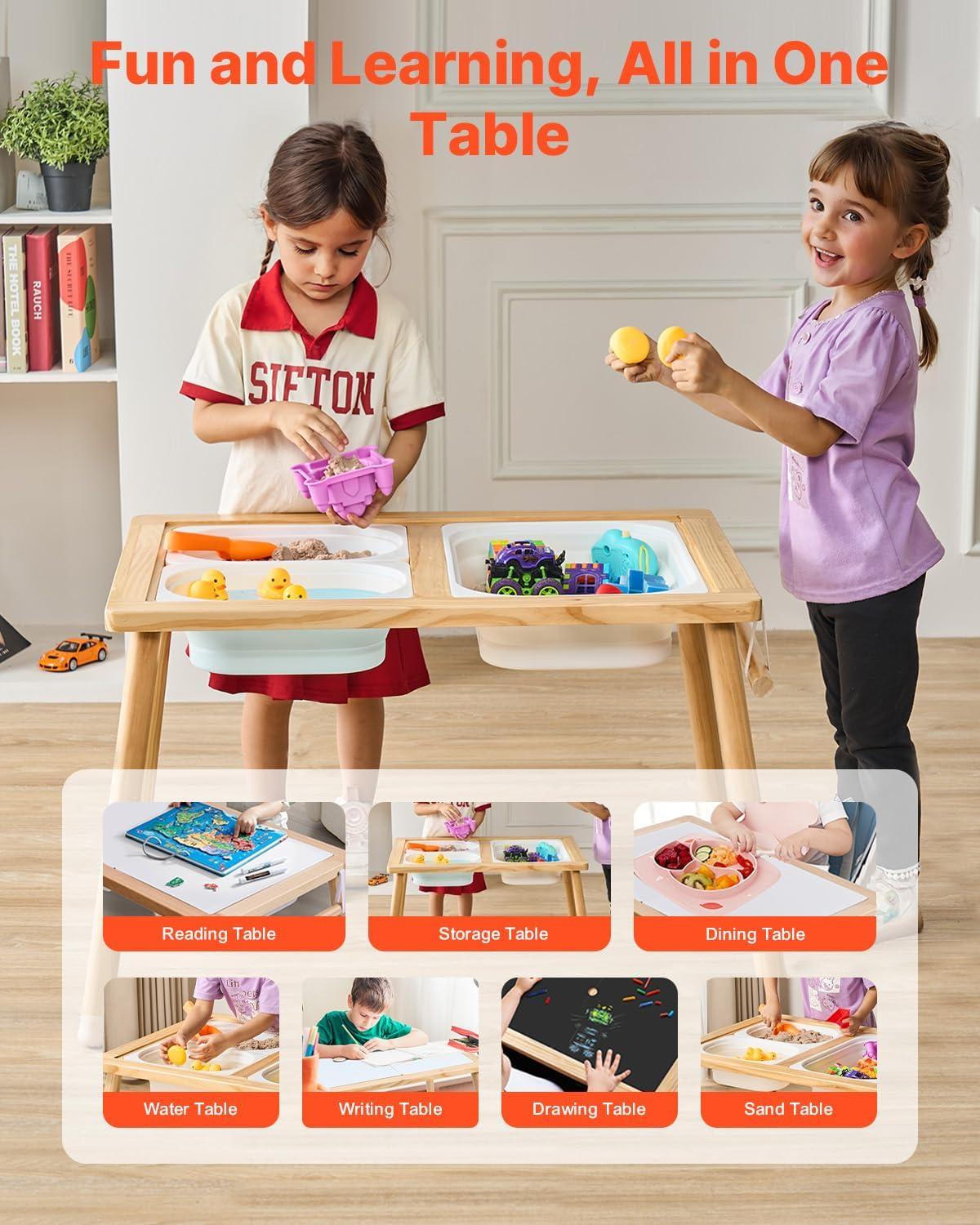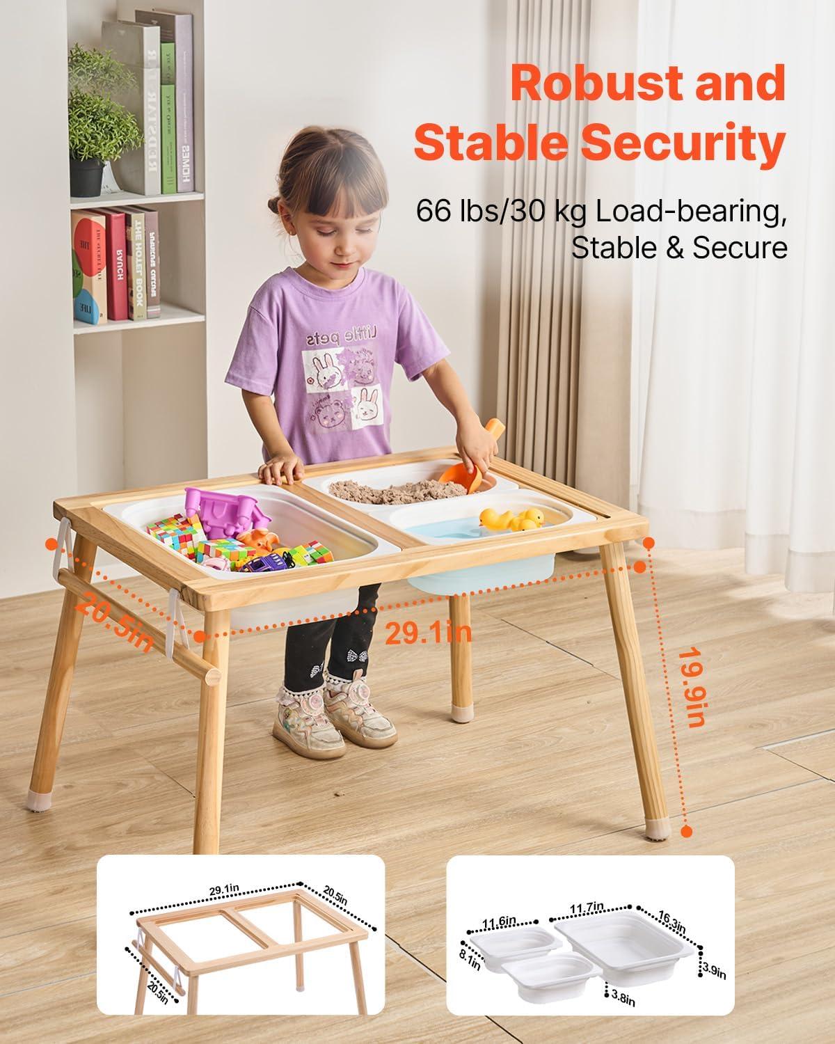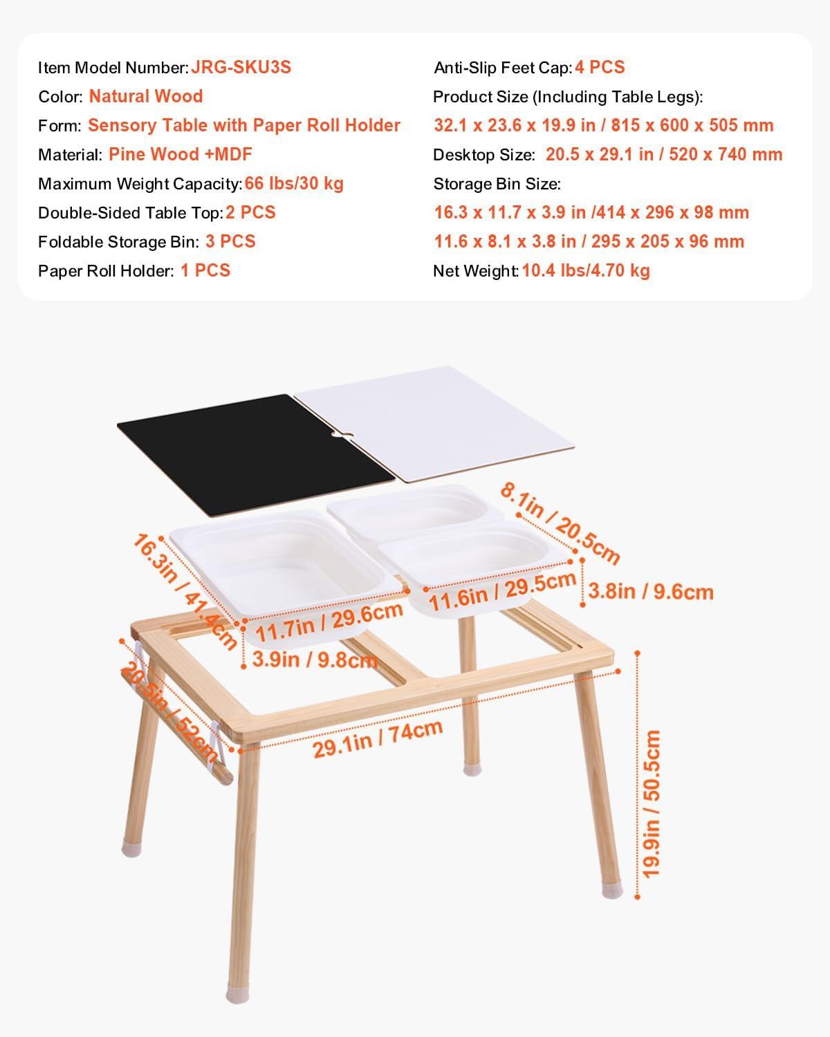 Kids Sensory Table: This kids sensory table measures 32.1×23.6×19.9 in and offers a tabletop play space for hands-on exploration. It helps develop fine motor skills, cognition, and self-regulation, ideal for playrooms, preschools, daycares, or home