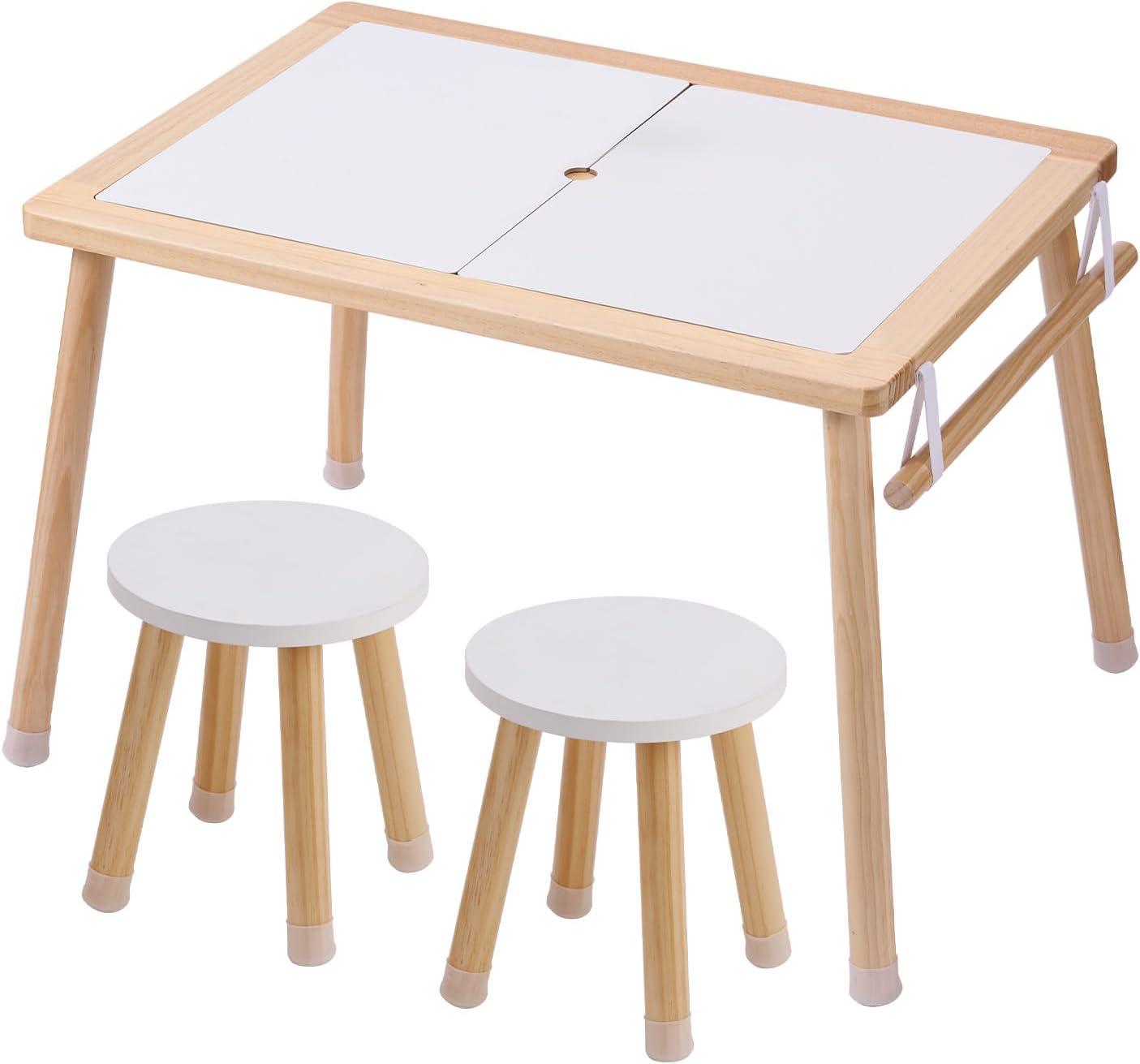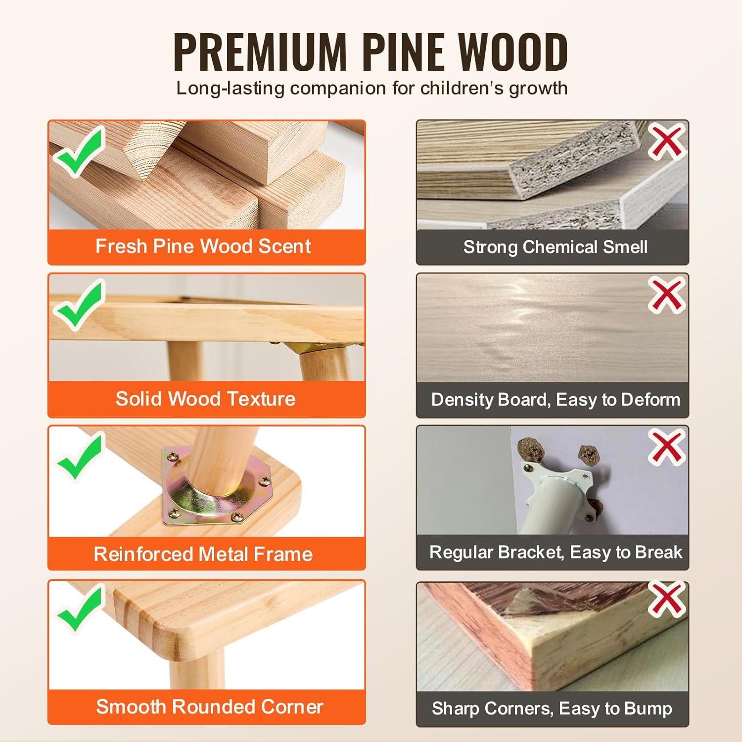 Natural Pine Wood Construction: The tabletop and legs are crafted from smooth natural pine with no sharp edges and finished with child-secure varnish. The 1 in top with MDF supports up to 66 lbs, making our kids play table sturdy, secure, and long-lasting