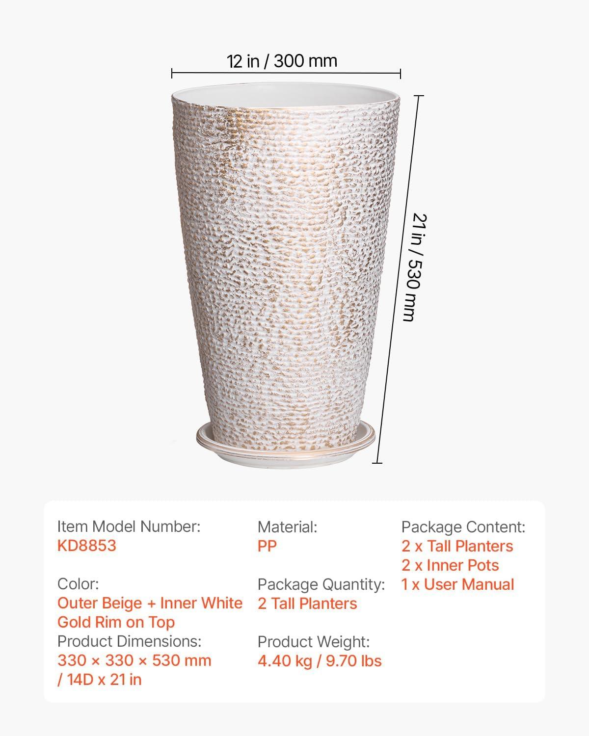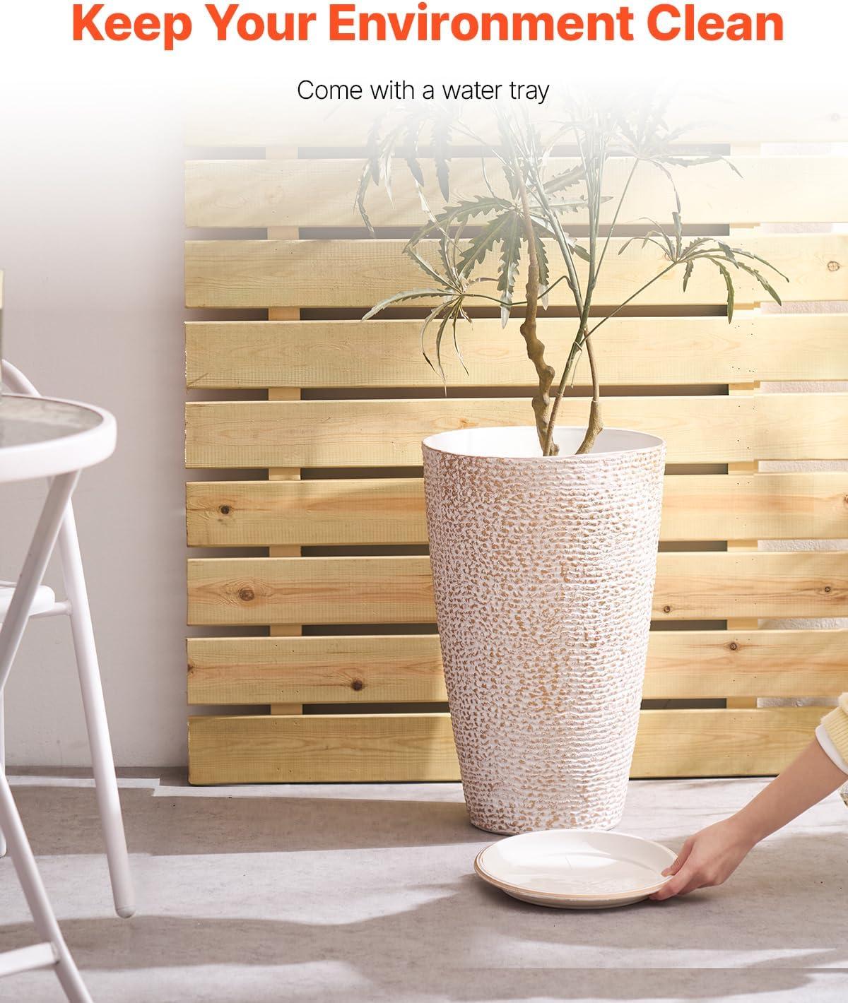 Smart Drainage Design: This tall planter features thoughtfully designed drainage holes and a water tray, effectively avoiding overwatering and keeping plant roots healthy. The combination avoids water pooling and root rot while maintaining a clean surrounding, enhancing your gardening experience with added convenience and care.