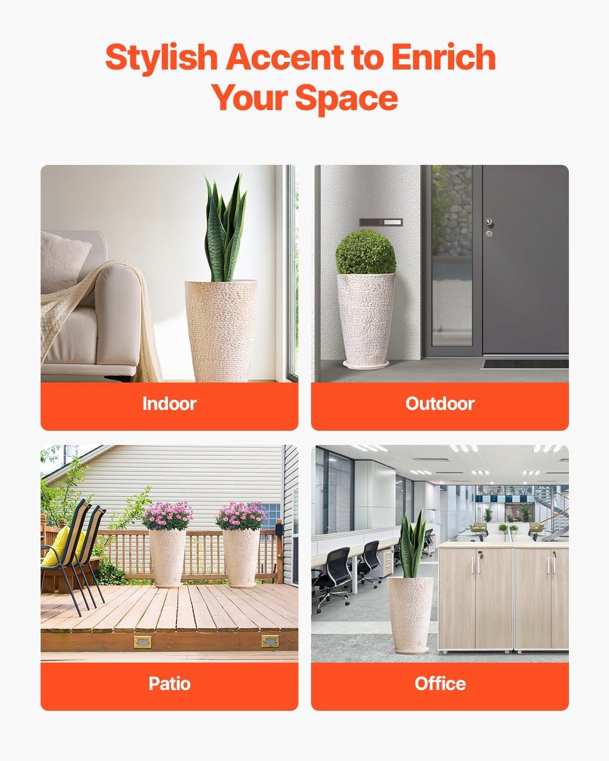 Durable PP Material: Crafted from sturdy PP material, this tall outdoor planter is designed to withstand harsh weather conditions like sun exposure and wind while avoiding fading and cracking. Made for outdoor use, it delivers long-lasting reliability and style while being recyclable – an ideal choice for eco-conscious users.
