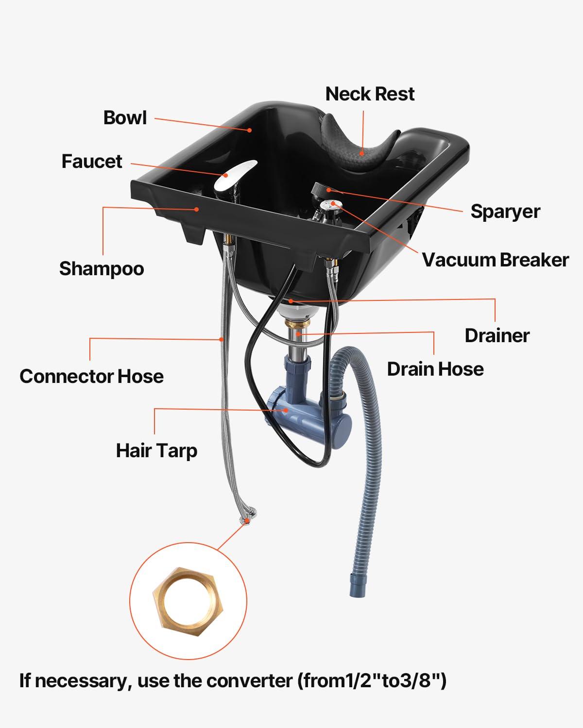 Classic Square Design: Designed with classic square style for large enough capacity and also easily adjust to any shampoo chair, so you don’t have to get new chairs when you want to upgrade your hair washing sink.