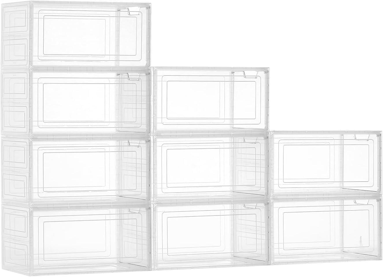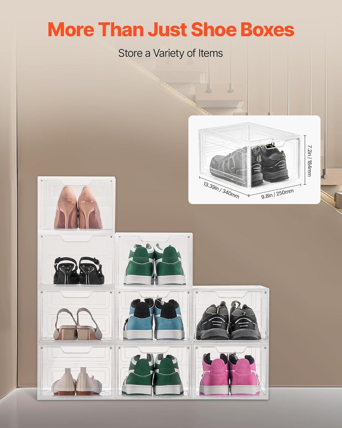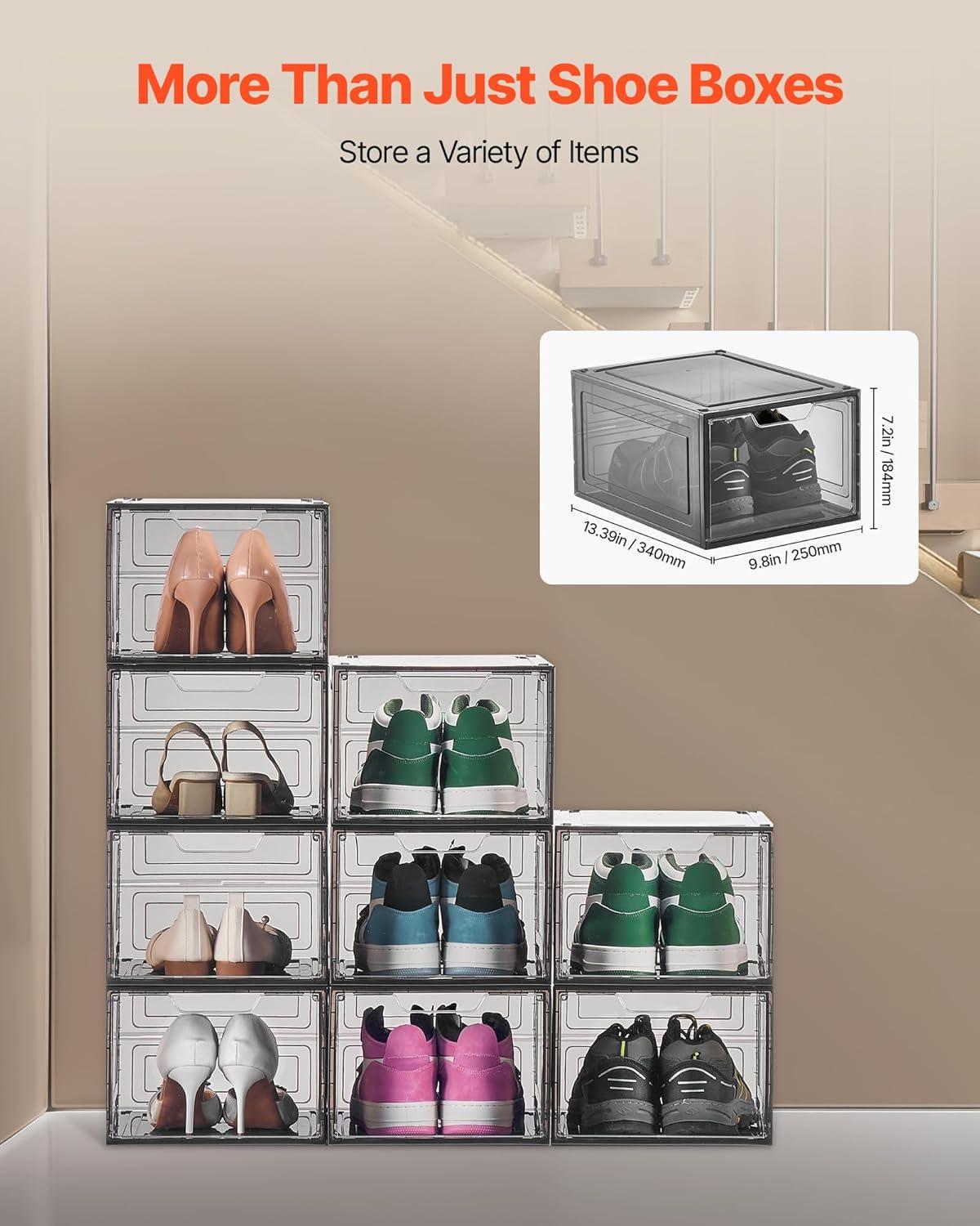 VEVOR Shoe Storage Boxes, 12 Pack Clear Stackable Shoe Boxes Storage Organizers with Magnetic Door, Fit up to US Size 13, Plastic Sneaker Containers for High Heels, Boots, and Hats, Transparent White(9 pack)