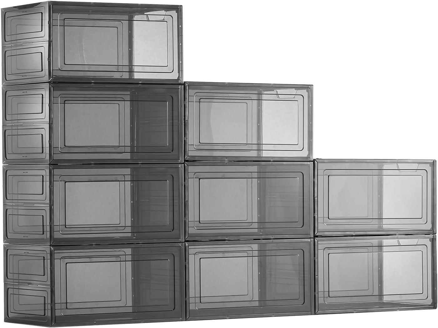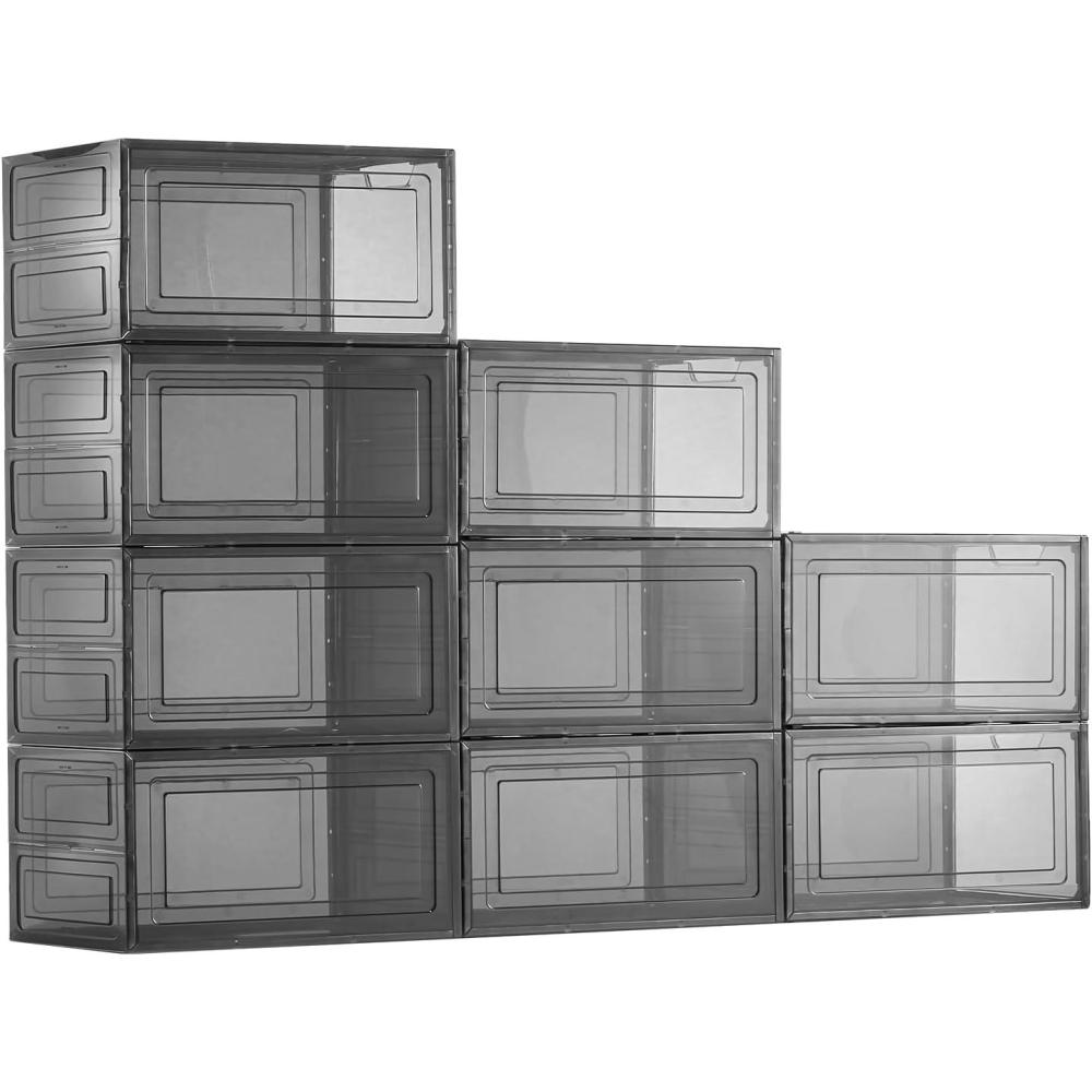 Sturdy Thickened Construction: Our shoe storage boxes are made of upgraded PP/PET on all six sides, providing superior strength for stacking multiple boxes without warping or cracking. The magnetic front door design makes it easy to access your shoes