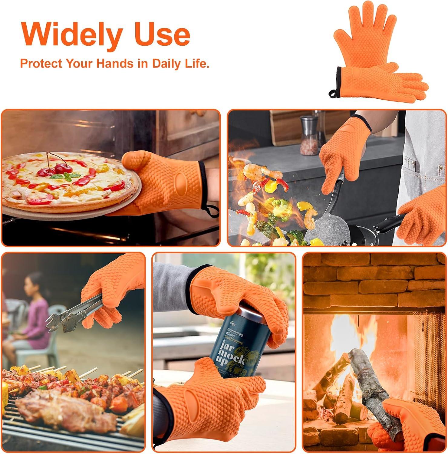 Versatile Kitchen Use: Wearing VEVOR grilling gloves, you can reach into grills, ovens, boiling water, ice buckets, refrigerators, and other kitchen appliances to pick up items. You can also safely and easily open cans, grab ice cubes, pick up bubbling roasts, and handle them directly.